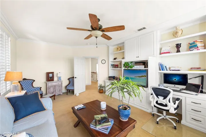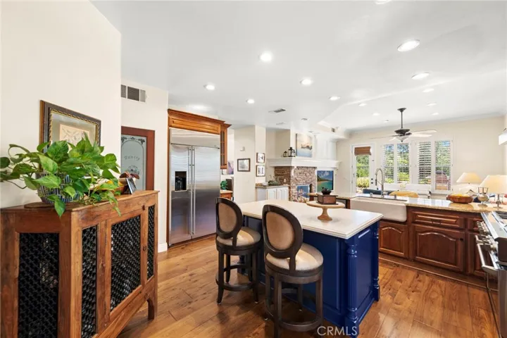 Tucked within the rolling hills of Coto de Caza, 58 Downfield is a timeless 5-bedroom, 4-bath executive home with approximately 3,455 sq. ft. of thoughtfully designed living space—where every room tells a story of craftsmanship, comfort, and California elegance. From the moment you enter, custom woodwork, wide-plank flooring, and sunlit spaces invite you into a home that balances warmth and sophistication. The chef’s kitchen, outfitted with GE Monogram appliances, quartz countertops, a walk-in pantry, beverage cooler, and wine fridge, flows effortlessly into the heart of the home, where gatherings unfold beside a distinctive two-sided see-through fireplace connecting the formal dining room and family room. The main floor features a versatile bedroom currently styled as a private home office—perfect for today’s flexible lifestyle. Upstairs, a spacious bonus room with built-ins offers additional sleeping space or flex use, while the detached casita provides a fifth private bedroom option—ideal for guests, hobbies, or multigenerational living. The primary bedroom suite serves as a tranquil retreat with an updated en-suite bath, and the beautifully landscaped backyard beckons with a stylish pool, spa, firepit, built-in BBQ, mature lemon trees, and a tree-lined lot for privacy. Additional upgrades include a generous laundry room with sink, invisible screens, designer window treatments, a 3-car garage with epoxy floors and upgraded opener, and recent mechanical improvements including a new water heater and pool pump motor. Located in one of Orange County’s most coveted guard-gated communities—with access to golf, equestrian facilities, scenic trails, and award-winning schools—this is more than a home; it’s a lifestyle waiting to be embraced.