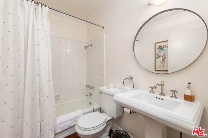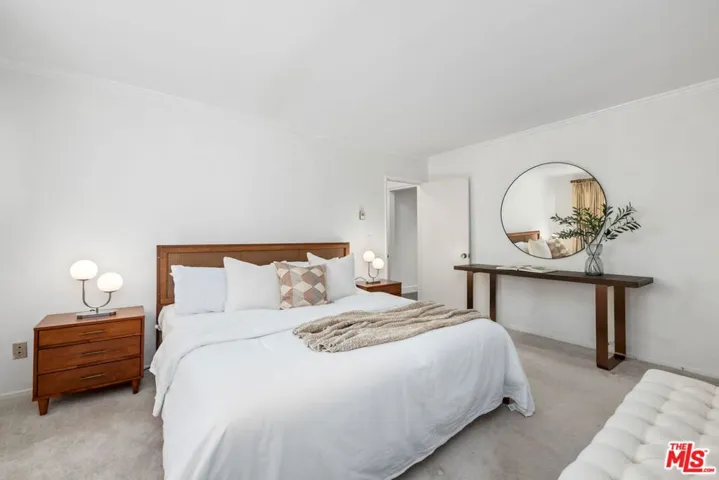 Santa Monica jewel just blocks from the beach! One of Santa Monica’s most coveted spots is host to this chic two-bedroom, two-bath condominium where delightful Montana Avenue and its fabulous shopping and dining are but a moment away. This location is a true village where everything one might need, including a quick visit to the ocean, just blocks away, is right there. Living here at 844 7th Street affords an easy, coastal, urban lifestyle rarely found anywhere in Los Angeles. Special only begins to describe it. This front-facing unit brings in natural light through sliding glass doors leading out to two rarely found private terraces. The very tasteful, gallery-like living area, with its dark hued wood floors, crown molding and crisp white walls, has strategically placed lighting for art. The dining area leads to the tastefully updated kitchen complete with glass-doored cabinetry, perfect for showcasing beautiful kitchen and dining ware. The primary bedroom has ample walk-in closet space and a lovely, updated ensuite bath with tumbled marble. The secondary bedroom has a wall bed and extensive built-ins allowing for either an office or bedroom choice. An updated hall bath completes the floorplan. Very generous storage space. Don’t miss this rare opportunity offering Santa Monica lifestyle at its finest!