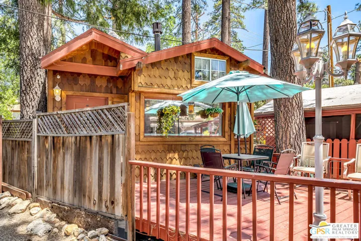 Come and experience the four seasons in Idyllwild. Escape the desert summer heat and enjoy the more temperate Idyllwild weather in this home conveniently located near the center of town. A very short distance to shops, eateries, and entertainment. This home greets you with a roomy deck, perfect for entertaining. The petite living space, ambient lighting and airy feeling from all the windows makes this space perfect for relaxing. The propane stove is a cozy source of heat for those crisp fall evenings. There is nothing like fall in Idyllwild. This unit has one bedroom and 3/4 bathroom. A lovely wooden walkway leads you to the backyard where there is a storage shed and it continues to a detached guest room with its own outdoor patio area. This lovely home is a must see.