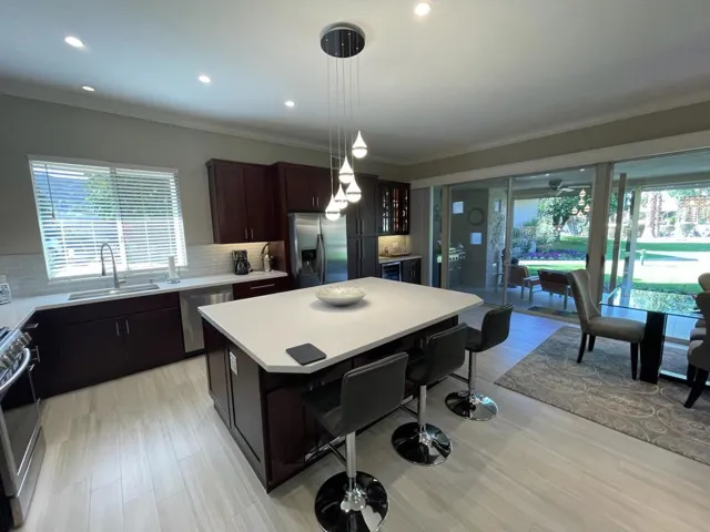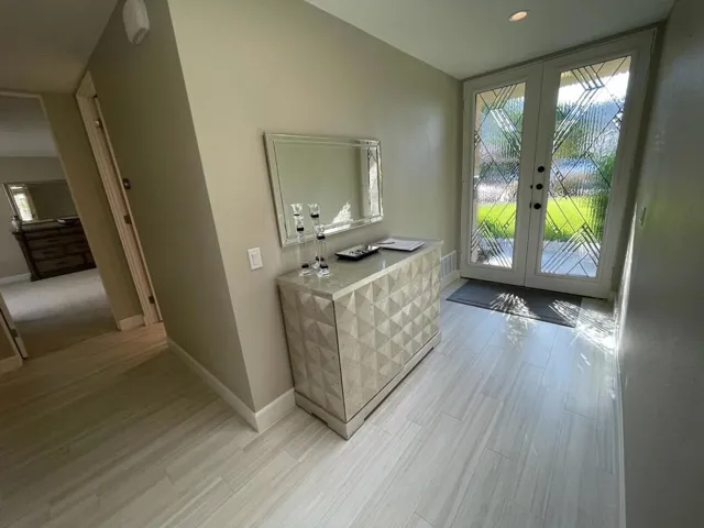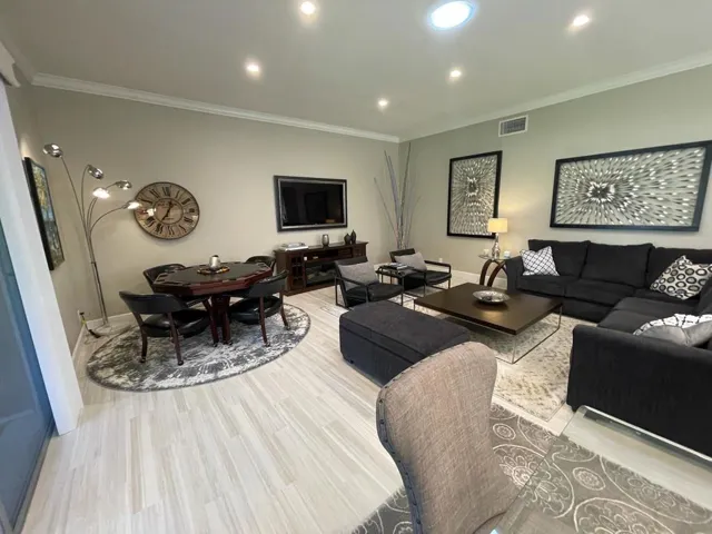 Ready for immediate occupancy for long-term lease. A beautifully remodeled and furnished 2 BR, 2.5 BA condo in IWCC. This floor plan is ideal, with a spacious kitchen/family room that opens to the covered patio and views of the community pool. A small office is located just off the patio for quiet reading space or those Zoom meetings. Both bedrooms have ensuite baths plus a powder room for guests. Each suite is separate from the other for quiet privacy. The kitchen has a wine refrigerator, wood cabinets, stainless appliances and an island with seating. Located across from the IW Tennis Garden, this is a prime spot with easy access to dining, grocery shopping and outdoor recreation. Detached 2-car garage. Located inside the guard-gated IWCC, this is the perfect location! Owner will consider 6 month lease term for $7,500/month. Tenant pays all utilities.