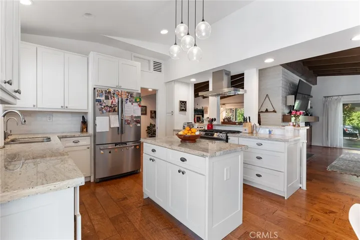 This exquisitely restored mid-century modern masterpiece, crafted by the acclaimed architect Charles Du Bois, epitomizes elegance and sophistication while harmonizing timeless design with impeccable modern enhancements. Perfectly situated on a serene, tree-lined street, this oasis invites you into a world of refined living with its expansive open floor plan, soaring vaulted ceilings, and a striking double-sided fireplace that exudes warmth and grandeur. The chef’s kitchen is a work of art, outfitted with top-of-the-line stainless steel appliances, sleek stone countertops, and custom cabinetry, making it an entertainer’s dream. The spacious dining and living areas, bathed in natural light, seamlessly transition to the meticulously designed backyard, creating an unparalleled indoor-outdoor living experience. The home offers five sumptuous bedrooms, including a versatile 5th bedroom or executive office, and a serene primary suite featuring bespoke closets and a lavish en-suite bath adorned with premium finishes. Step into the private backyard oasis, where drought-tolerant landscaping, a chic firepit, and lush fruit trees provide the perfect backdrop for relaxation or sophisticated entertaining. Thoughtful upgrades include engineered hardwood floors, cutting-edge smart home technology, and energy-efficient enhancements that cater to modern luxury living. Located in the prestigious Calabash, Hale, and El Camino school district and just minutes from the scenic Malibu coastline, this exceptional property is a short stroll to high-end boutiques, gourmet dining, and the iconic Old Town Calabasas Farmers Market. The property offers an unparalleled lifestyle of comfort, luxury, and convenience.