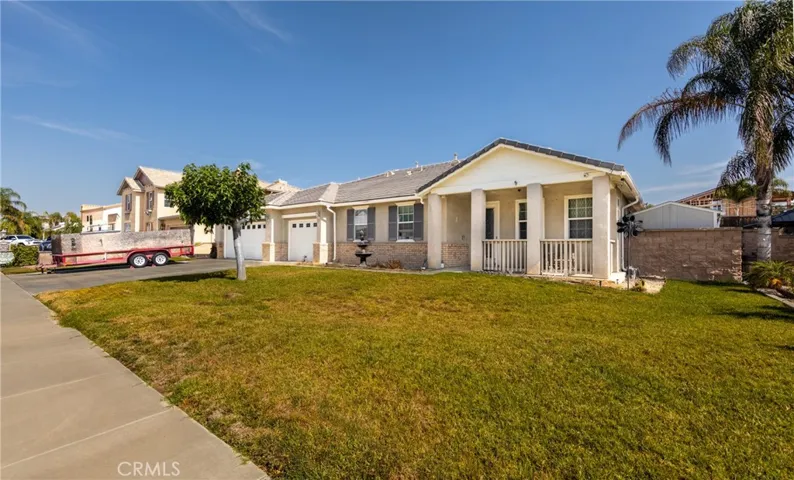 Spacious Single Story with Great Curb Appeal! Move in condition with many upgrades and a 3-car garage. Fantastic neighborhood of homes showing owner-occupied Pride of Ownership. Upgrades include custom front door with leaded glass insert; Flooring, including ceramic tile in wear areas and wood flooring in the family room. The kitchen boasts granite counter tops and a custom stone backsplash. Large kitchen island. This single story has great flow for family living. The rear yard includes a stamped concrete patio and Alumawood Patio Cover, approximately 40 feet wide with built-in lighting. The side-yard Tuff Shed is of course included. “Whole House Fan” to efficiently cool the home and attic. Ceiling fans in all bedrooms and the family room. Oversized and spacious master bathroom with large walk in closet, make up vanity and spa tub. The attic offers ample storage with pull down stairs for easy access. Don’t miss this upgraded and well maintained gem!