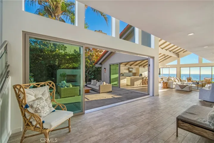 Perched above Lost Winds beach, this extraordinary beach front home redefines coastal luxury living with a thoughtful design that capitalizes on the magnificent views from every vantage point. The 4 bedroom, 5 bathroom home is a perfect luxury beach rental, offering dual primary suites with panoramic ocean views and two secondary bedrooms with en suite bathrooms and flexible sleeping configurations. There are multiple courtyards and outdoor spaces including a private Jacuzzi nook, a center Eichler-esque atrium complete with built in fireplace, plush outdoor seating, bbq and an over- sized Evo grill. The ocean front deck is multi-tiered and overlooks San Clemente’s beach trail and the volleyball courts at Lost Winds beach – enjoy outdoor dining and lounging on the main deck or take in the sunset next to the cozy built in fire pit on the lower deck. The great room offers exposed vaulted ceilings with panoramic views from Cottons Point to Dana Point. The chef’s inspired kitchen is fully equipped with Wolf and Sub Zero appliances – including steam oven and coffee machine. While offering luxury, the home was designed to accommodate a comfortable beach lifestyle with durable and livable materials such as porcelain tile floors, imported Dekton countertops and washable perennial fabrics. Situated in the coveted neighborhood of Southwest San Clemente, just steps to the beach, walking distance to downtown, 25 mins to John Wayne airport and 1 hour to either LA or San Diego. This rare opportunity is perfect for a family relocating to Orange County, an extended beach vacation or respite from your own similar remodel.