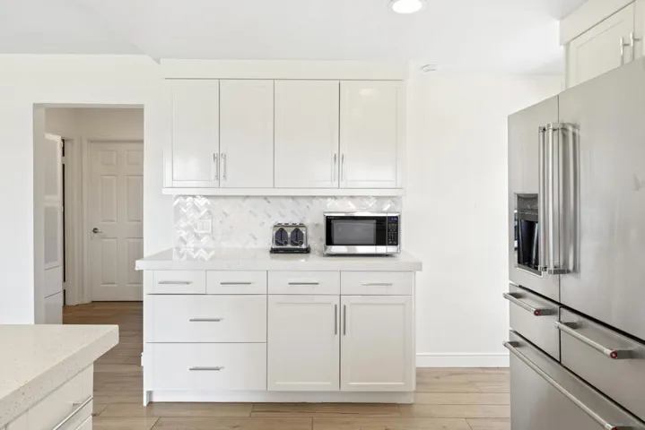 Beautiful Desert Home at a New Price Improvement! Ideally situated near the Indian Wells Tennis Garden and just minutes from El Paseo’s premier dining, shopping, golf, theaters, great schools including Gerald R Ford Elementary, a 2025 California Distinguished School-this 3-bedroom, 2-bath Palm Desert home blends mid-century charm with thoughtful contemporary upgrades. Set directly on the 16th hole, it offers sweeping views of fairways, water features, and mountains-uninterrupted by power lines. Fully remodeled home with an open-concept layout, the light-filled living area flows effortlessly into a stylish kitchen with quartz countertops, custom kitchen cabinets, stainless steel appliances, dining area, and a breakfast bar, perfect for easy entertaining. The spacious primary suite features fresh carpet, custom closet doors, and a sleek en-suite bath. Both bathrooms have been tastefully redesigned with designer tile and modern fixtures. Additional highlights include dual-pane windows, new bedroom carpet, custom window treatments with shade screens, and a spacious 2-car garage with extra space for a golf cart, bikes, gym, or workshop, roof certification. The back covered patio invites you to relax and take in the serene golf course and water and mountain views–your own desert retreat! Home is sold partially furnished.