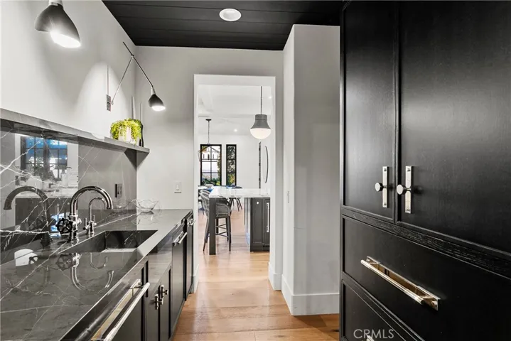 Welcome to Four Thomas Road, an exquisite custom estate situated in Covenant Hills, offering nearly half an acre of lush landscapes and breathtaking ocean-facing panoramic views. Originally designed by renowned architect, John McCloskey, this stunning residence has been meticulously renovated to embody today’s most sought-after aesthetics, showcasing an unwavering commitment to quality and detail.Inside, you’ll find five luxurious ensuite bedrooms and seven elegantly appointed bathrooms, along with a subterranean garage that accommodates six vehicles. The estate also features a wine cellar, private gym, billiards room, office, and an elevator, marrying opulence with functionality in every corner.As you enter this magnificent home, you’re welcomed by soaring cathedral ceilings and open pocket doors that seamlessly blend indoor and outdoor living. The warm, wide plank hardwood floors flow throughout, while custom wood finishes on the ceilings and walls amplify the sense of luxury. The inviting living room boasts a stunning fireplace and flows into the dining room, accentuated by a striking fluted wall. The centerpiece of the home is the 432-bottle glass wine cellar, complete with a built-in cigar humidor, offering an elegant touch for connoisseurs. The gourmet kitchen is a chef’s dream, outfitted with top-of-the-line Wolf & Viking appliances, including a grand 60″ range and oven, a massive 100″ built-in Sub-Zero refrigerator, a walk-in pantry, and a beverage station. Waterworks fixtures and exquisite European marble countertops elevate the kitchen’s sophistication, creating a space that’s as functional as it is beautiful.Throughout the estate, handcrafted hardware from England adds a refined touch, epitomizing superior craftsmanship. The master suite serves as a tranquil retreat, featuring a spa-like adjoining bathroom equipped with Waterworks fixtures, a standalone tub, an advanced steam shower, and his-and-her walk-in closets.Step outside into a serene backyard, where beautifully appointed gardens enhance the ambiance. Enjoy a pristine pool and spa, a built-in BBQ kitchen area, alfresco dining options, outdoor fireplaces, and a covered patio—all while basking in stunning sunset views and ocean breezes. Privacy reigns at this remarkable estate, located in a secluded cul-de-sac within the guard-gated Covenant Hills community. Embrace sophisticated living in one of Southern California’s most prestigious neighborhoods, where luxury and elegance truly converge.