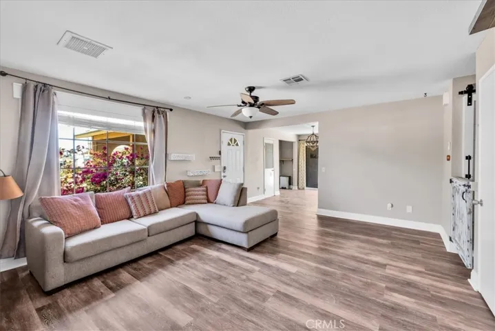 As you pull into the driveway, you’ll immediately be greeted by a two-car garage, two majestic fully grown palm trees, and a lush Ocotillo that warmly welcomes you. Step through the front door and discover an updated floor plan featuring stylish wood laminate flooring and built-in shelving, complemented by unique wood and masonry wall accents that create a pleasing and inviting atmosphere.