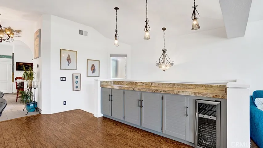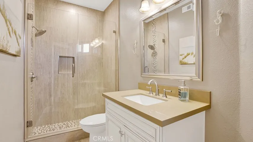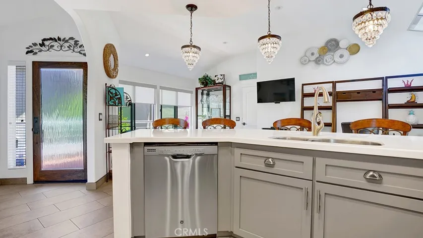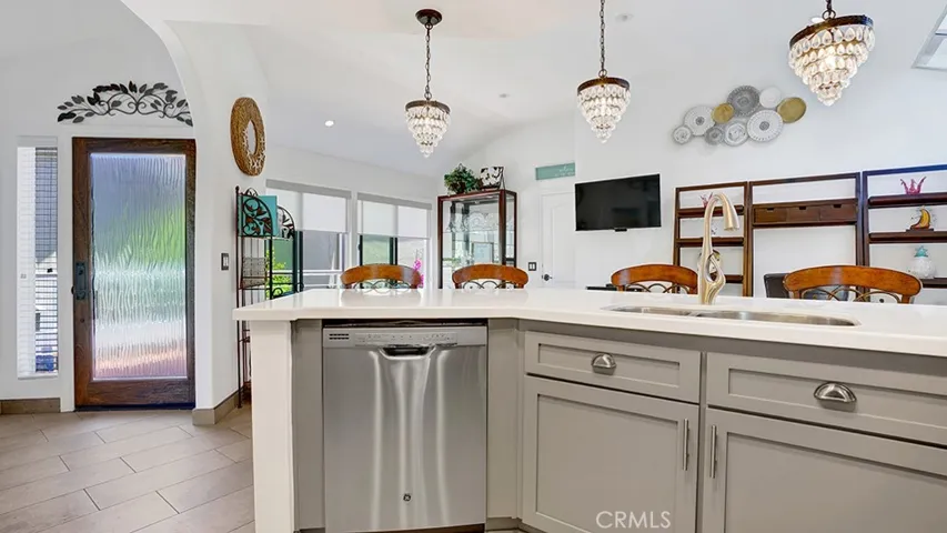 This home shines with thoughtful updates and elevated finishes throughout. New dual-pane Pella windows (2021) with a transferable warranty, plus fresh interior paint, and updated flooring create a fresh and inviting atmosphere. Elegant lighting includes chandeliers, pendants, and recessed fixtures—adds warmth and sophistication in every room. The remodeled kitchen (2014) includes a range which allowed for the addition of a custom pantry and microwave closet, not typical for this model. Kitchen also features quartz countertops, soft-close cabinetry, and a basketweave mosaic backsplash. Bathrooms have also been tastefully remodeled, with the primary suite offering a spa-like retreat featuring a freestanding soaking tub, tiled shower, and a dual vanity topped with quartz. Additional upgrades include copper repipe (2022), addition of A/C (2022), and a new furnace (2020). With HOA dues at just $280/month, this curated retreat offers low-maintenance luxury in one of Dana Point’s most desirable coastal communities.