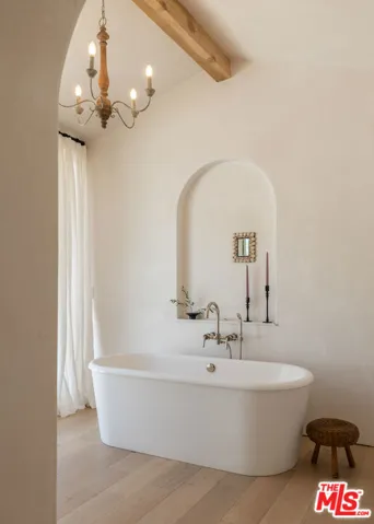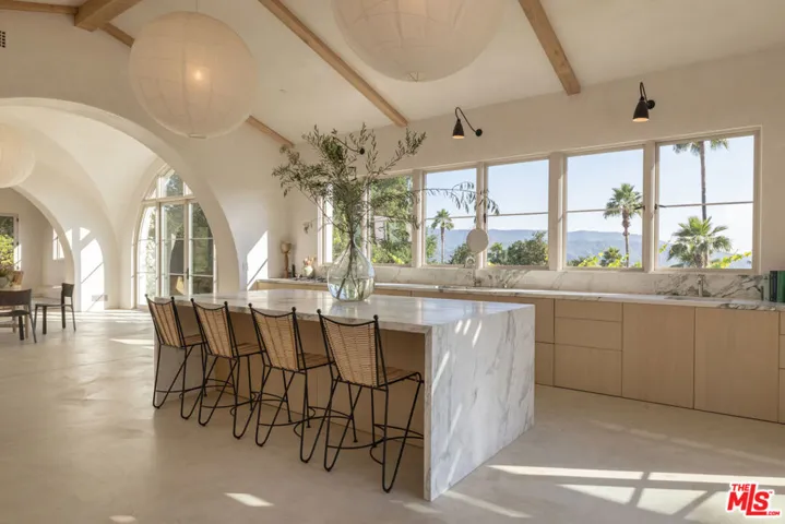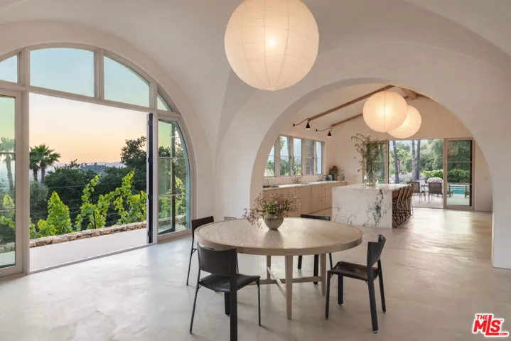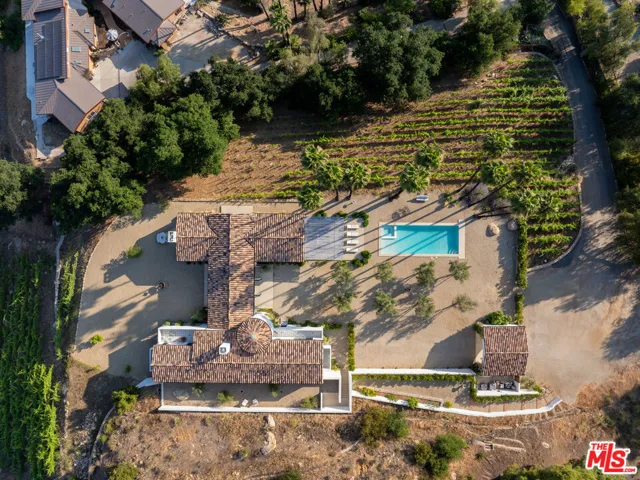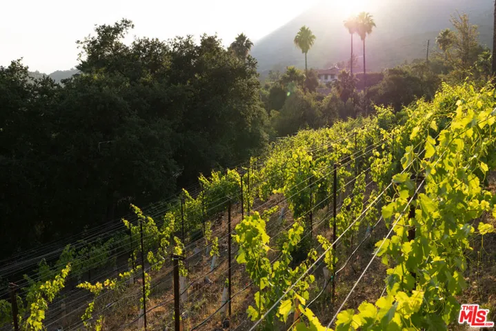 Perched on a private knoll in Ojai’s coveted East End, this 2023-built estate blends modern Mediterranean design with refined living. The 5,100 sq ft villa sits on nearly two secluded acres and includes a fully licensed, organically farmed boutique vineyard with over 1,300 mature vines.Thoughtfully crafted with top-tier materials, the home features a dramatic great room with 12-foot ceilings, floor-to-ceiling French doors, groin-vaulted ceilings, and a sculptural circular staircase. White cement floors, hand-plastered walls, and arched passageways add timeless elegance.Designed for both entertaining and everyday luxury, the chef’s kitchen boasts Sub-Zero refrigeration, Fisher & Paykel ovens, and Waterworks fixtures, flowing into open dining spaces and a veranda perfect for enjoying Ojai’s “Pink Moment” sunsets.Four private bedroom suites, each with spa-style baths and outdoor terraces, provide serene retreats. The grounds offer ancient oaks, an olive allee, drought-tolerant gardens, a heated pool, spa, and multiple outdoor living areas.This estate combines beauty with function. Plans for an ADU, a potential winemaking facility, and safety features like fire-resistant materials, private hydrant, and emergency turnaround ensure long-term peace of mind.A rare blend of design, nature, and opportunitythis East End estate is more than a home; it’s a legacy.