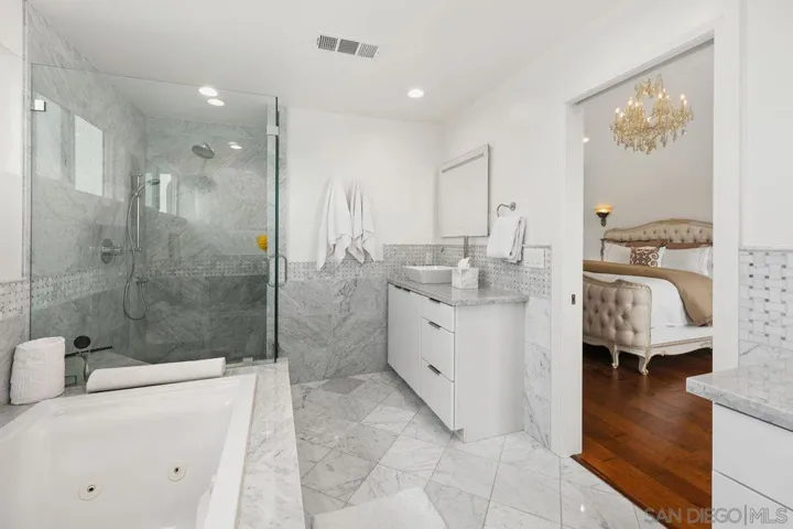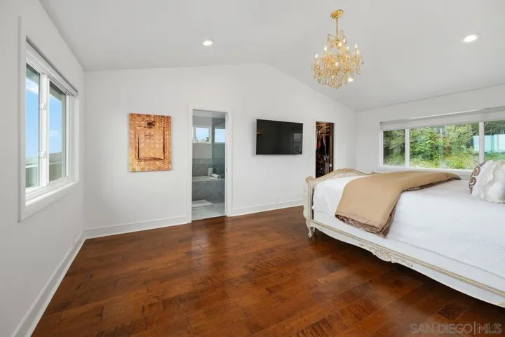 New Price Improvement! Breathtaking eastern and city skyline views from this newly rebuilt sleek and modern home in North La Jolla! This plenty spacious 3,861 square foot estate boasts 6 bedrooms and 6.5 baths with multiple skylights and vaulted ceilings that bring in an abundance of natural light. All rooms and baths are done with no expense spared on the interior finishes to create luxurious living. There are 3 view decks, 3 fireplaces, 3 zones of AC and heating, 2 water heaters and a 3 car garage. Enjoy the chef’s kitchen and great room that have expansive picturesque windows that frame the eastern views and combined with a modern elongated fireplace, creates a perfect ambiance for family and friends. As you enter the home, you will find 2 bedrooms upstairs, including the primary suite, a secondary primary bedroom on the main level with a newly added view deck. In addition, there are 3 spacious secondary bedrooms ensuite with bathrooms downstairs with 2 more view decks which is perfect for a growing family, guests or an Airbnb. Additionally, the home has fully permitted plans to build a 1,200 square foot ADU with a kitchen, 3 bedrooms and 3 baths. Beyond its stunning interiors and majestic views, the home is in a central location. Ideally situated close to La Jolla Shores, UCSD, the UTC Mall, Scripps Hospital, the La Jolla YMCA and quick access to Hwy. 5. A view forever and a home to love!