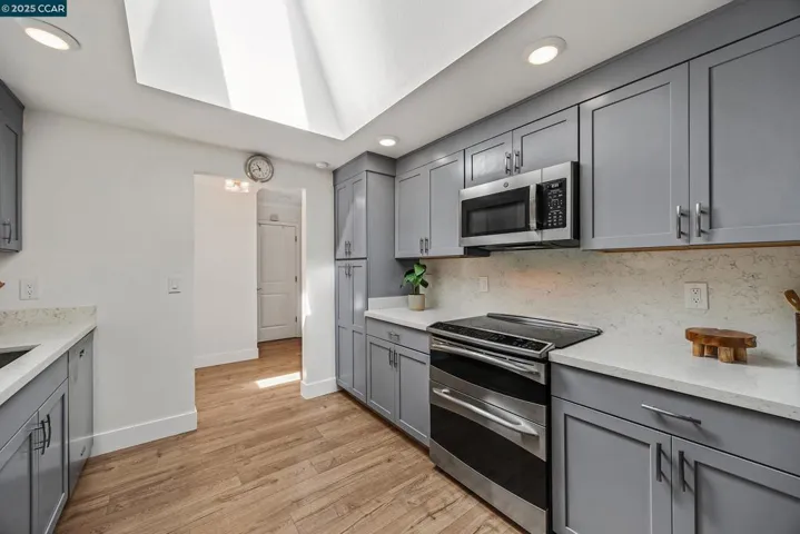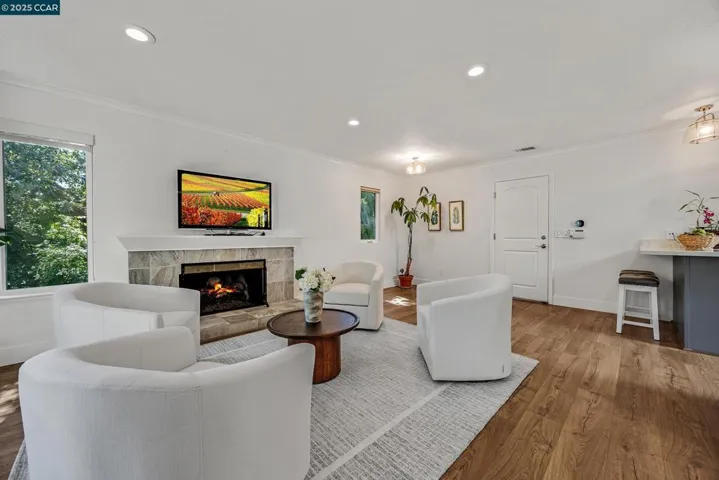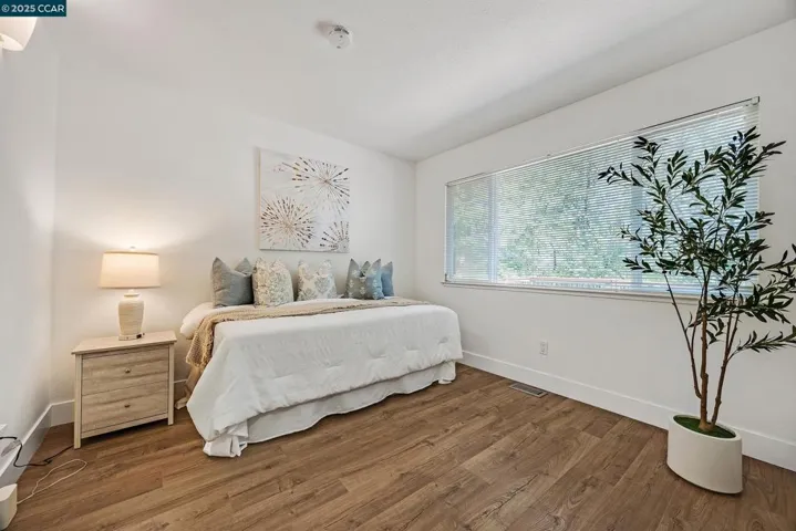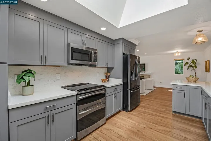 Tucked away on a quiet cul-de-sac and framed by a lush backdrop of mature trees, this 3-bed, 2.5-bath, appx. 2079 square foot two-story single-family home is a private retreat just minutes from the Contra Costa Country Club Golf Course. Step outside to not one, but two Trex decks, which are perfect for morning coffee surrounded by nature or evenings unwinding in your private jacuzzi under the stars. On the main level, natural light pours through the skylights and expansive picture windows, framing mature oaks and a seasonal creek. The heart of the home—a beautifully updated kitchen- offers the ideal blend of modern style and everyday functionality, ready to inspire your inner chef. Downstairs, you will love relaxing in the ample-sized primary bedroom retreat, which offers access to the back deck, a spa-like bath, a large walk-in closet and a convenient utility/laundry room with plenty of space for storage. Live near Hidden Lakes Park, Paso Nogal Dog Park, Diablo Valley College, shopping, excellent public schools, and freeways. Whether you’re entertaining on the deck or enjoying a quiet moment with nature, this home offers a lifestyle that’s both connected and serene.