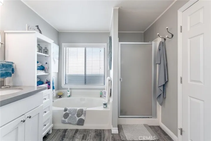 **OWN THE LAND**55+ Community**MOTIVATED SELLER** Stylish and comfortable. Granite countertops, custom glass/stone backsplash. Generous corner lot and the BACKYARD IS EASILY EXPANDABLE to create even MORE SPACE (with HOA approval). Primary suite on one end of the home, other rooms are on the other, plenty of breathing room in the open and airy floorplan. Contemporary bathrooms with updated stone-topped vanities. Fantastic flow, high-pitched ceilings and ceiling fans all throughout. Two opposite bedrooms with generous windows and generous closets, Semi-attached workshop w/ lighting, electricity, cabinetry & lots of storage w/ rear exit to back yard & double entry doors w deadbolt. **The Golf Knolls HOA includes full EXCLUSIVE MEMBERSHIP and ACCESS to private pool, spa, clubhouse, and a full range of social activities.**THIS HOME IS FINANCEABLE CONVENTIONAL/FHA/VA**Centrally located/great access to amenities/stores/health care facilities and the brand new Murrieta Hot Springs spa.