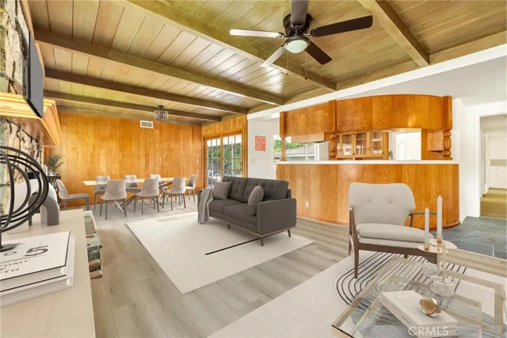 Located in Hacienda Heights, this single-level house features an entryway with stone planters and a wide door. This corner property includes 3 bedrooms, 2 bathrooms, and a separate laundry room, offering comfort and convenience. The interior is filled with natural light and well-designed elements.