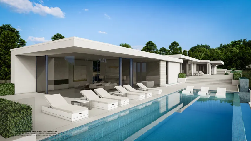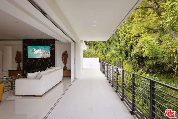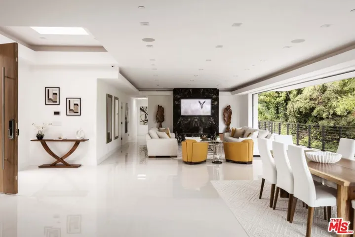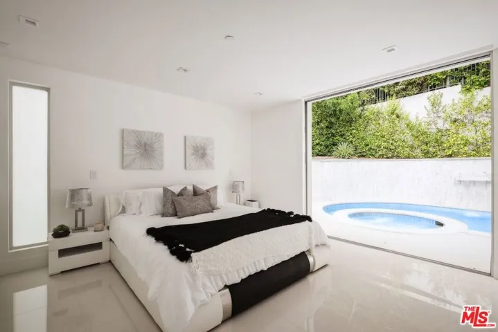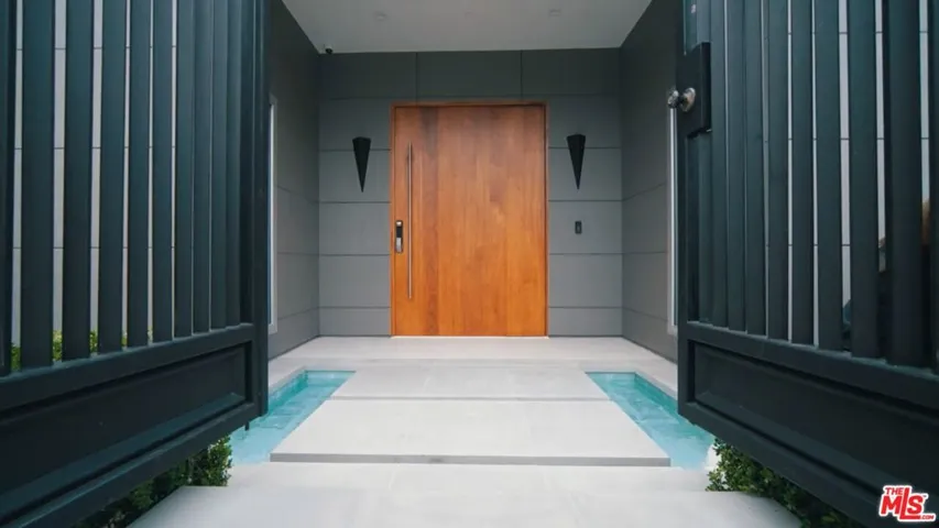 Set behind gates on a premier and prestigious Beverly Hills street (Beverly Hills proper – not BHPO), all on one single level, this newly rebuilt smart home seamlessly blends cutting-edge technology with refined modern luxury. Greeted by approximately 175 feet of frontage and impressive curb appeal, the residence invites you across floating steps above a serene reflecting pool, where a custom-designed pivot door unveils bold, sophisticated modern architecture. Inside, expansive floor to ceiling Fleetwood pocket doors disappear to reveal curated greenery and treetop vistas while creating a fluid indoor-outdoor living experience. Gleaming porcelain floors and tray ceilings add volume and sophistication to the open-concept layout. The living room centers around a dramatic, floor-to-ceiling bookmatched slab fireplace. Multiple Primary bedrooms with ensuite bathroom designs, large walk-in closets and floor to ceiling Fleetwood pocket doors leading to a magnificent resort style pool & spa experience. The showpiece kitchen is a chef’s dream; complete with two separate islands, one prep island, and one buffet/breakfast bar with recessed countertop beverage chiller, sleek custom European designed cabinetry, Miele appliances including steam and speed ovens, two separate gas and induction cooktops, a built-in Meile espresso machine, two separate Bosch dishwashers and professional-grade Sub Zero Column refrigerator & freezer units. Entertaining is effortless with a nearby bar featuring a dual-zone beverage cooler and a striking floor-to-ceiling glass climate controlled wine cellar that’s as artful as it is functional. Smart home integration offers seamless control over lighting, sound, security, and climate, enhancing both convenience and ambiance. Outside, enjoy multiple viewing decks, serene lounging spaces, a sparkling pool and spa, lush flat grassy yard and a generous motor court round out the grounds of this entertainer’s haven. Just moments from Sunset Boulevard, Rodeo Drive, world-class dining, and premier Beverly Hills amenities with access to top-rated public schools, world renowned police and fire departments; this estate offers a lifestyle of effortless elegance, innovation, and distinction.