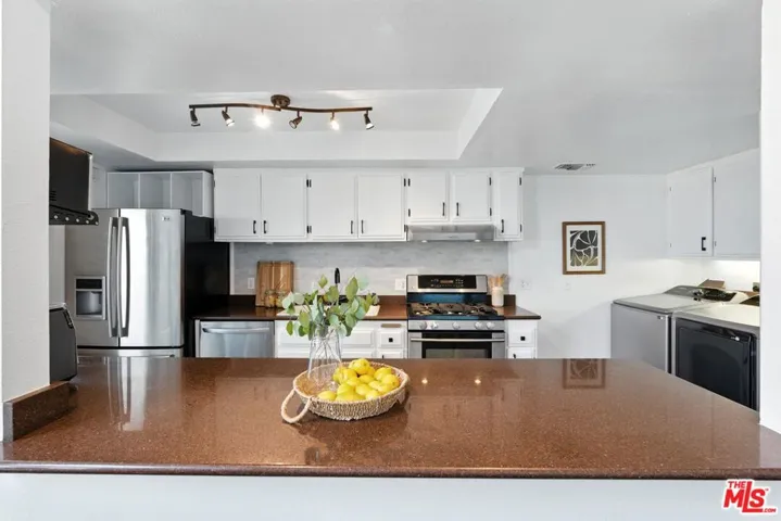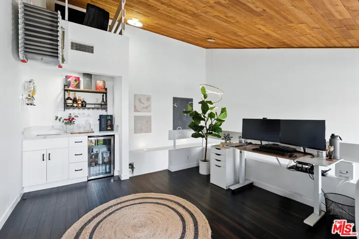 Just Refreshed -Open Sunday,10/5! Townhouse Style Condo with Rooftop Deck and Bonus Loft Spaces. Light filled and recently updated, this multi level Mar Vista townhouse style condo delivers volume, versatility, and modern comfort in one of the Westside’s most coveted pockets. Double height ceilings and seamless indoor outdoor flow set the tone, with two private outdoor spaces including a sunset ready rooftop deck. The flexible third level loft with a newly added wet dry bar and hideaway sink functions perfectly as an office, guest suite, or potential third bedroom. Just above, the fourth level lounge adds even more usable space for a media room or cozy retreat. The primary suite features a custom walk in closet and spa like bath with a heated soaking tub. Remodeled bathrooms, updated bamboo flooring, and a mini split AC system one of only two units in the entire building with air conditioning ensure year round comfort. All four wall mounted TVs including a Samsung Frame are included for effortless move in. EV ready tandem parking and proximity to top schools, local dining, and Mar Vista favorites round out this exceptional offering.