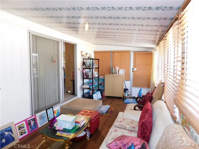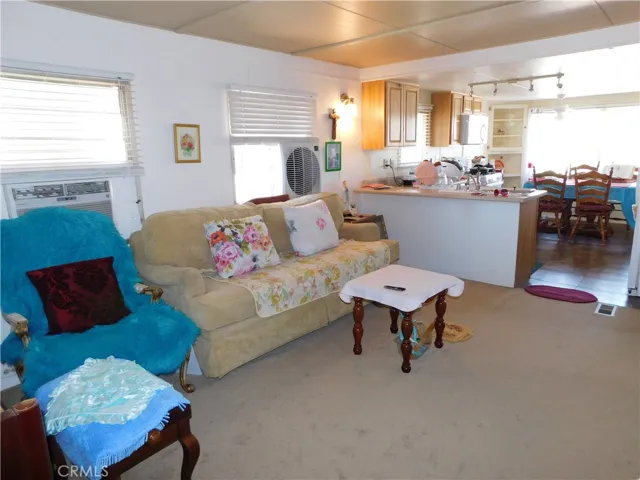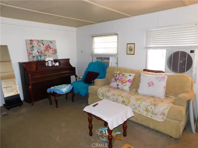 ~Beautiful home, situated at the end of a cul-de-sac, located in Yucaipa’s highly desirable 55+ community, Carriage Trade Manor!~Low space rent…Only $420!~Pride of ownership shows throughout with features including: New plumbing throughout the home within last two years, freshly painted exterior, and newer evaporative cooler in living room!~When you come in the front door, you’ll find a huge California room with vinyl flooring, blinds for privacy, and endless opportunities for usage, whether it’s a gym, office space, or storage!~Spacious and welcoming living room, which offers both an evaporative cooler and wall/window AC unit, is attached to California room through sliding glass doors!~Living room open to the bright and upgraded kitchen, which also offers enough space for a full-size dining room!~Newer appliances include fridge, dishwasher, free-standing gas stove/oven and built-in microwave!~Updated wood cabinets/drawers for all your storage needs!~Plenty of counter space!~Dining room offers more built-in storage and beautiful mountain views!~Queen size primary bedroom with ceiling fan, an abundant amount of built-in closet space, and newer wall/window AC unit!~Newer nest thermostat for furnace!~Full bathroom provides plenty of storage/linen space, upgraded vanity/sink area, newer toilet, and tub/shower combo!~Spare bedroom is full size with ceiling fan, natural lighting, and built-in closet space!~Enclosed patio with security screen door hosts laundry area with included washer/dryer and storage shed!~2-3 car carport (1 covered space)!~Large low-maintenance lot, with privacy and endless opportunities for entertainment and relaxation!~