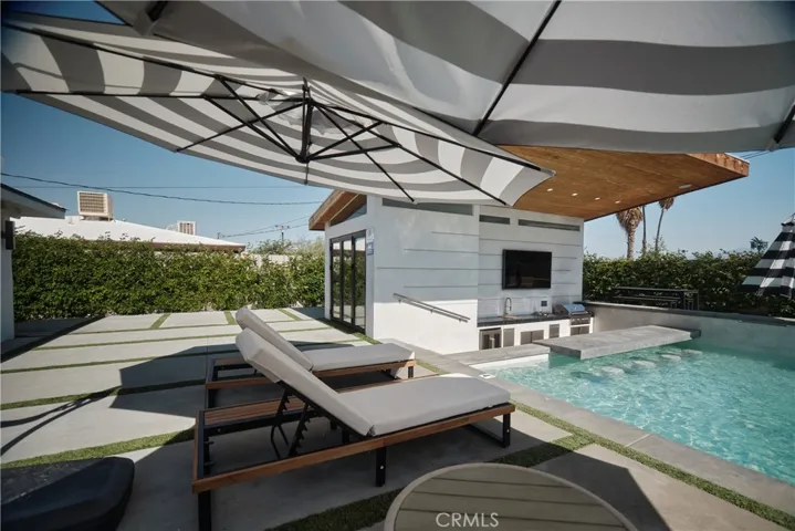 Step outside to experience true resort-style living. A sparkling saltwater pool and spa are complemented by an outdoor kitchen, pool house, and gym—creating the ultimate setting for leisure and luxury. Each bedroom suite features its own private patio, delivering a refined guest experience with comfort and privacy in mind.