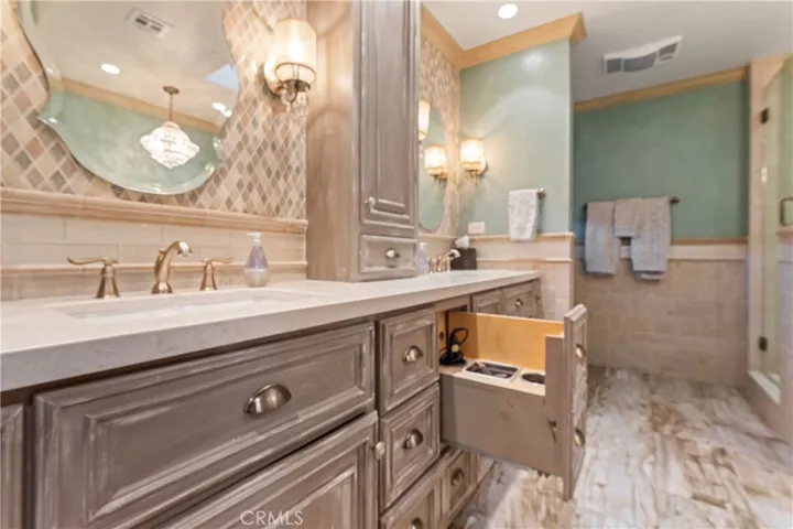 Upon entering thru the Leaded Glass Door you will be in the Great Room with its Open-concept design Uniting the Dining / Living Spaces & Guest Bed off to the side. Hallway has many Cabinets for organization. The ultra-Luxurious Primary Suite has a Dramatic Double-Sided Fireplace that creates ambiance & warmth and a Secluded Office Nook & Direct Access to a Private Backyard. The Spa-Inspired Bath has Granite Countertops, Custom Cabinetry, a Freestanding Soaking Tub, Dual Sinks, Tiled Shower & Walk-In-Closet. 3 Bedrooms and 2 updated Baths, including an efficient Jack & Jill setup. The dedicated Laundry Room features generous Linen, Folding Table & Supply Storage. Culinary Enthusiasts & Entertainers will be thrilled by the Chef’s Kitchen, Antique-style Cabinetry, Granite Countertops, Central Island / Breakfast bar, Professional-grade Viking Appliances, Double Ovens, & a Premium Sub-Zero Refrigerator & Freezer. A spacious Walk-In Pantry gives you lots of storage. LG Breakfast nook area looks out the French doors to a scenic outdoor patio. Vaulted Ceilings, a striking Fireplace welcomes you into the Family Room.