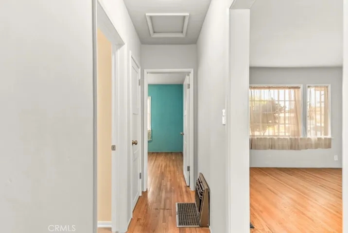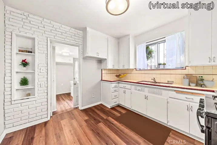 Conveniently situated within easy reach of shopping and public transportation, this charming 2 bedrooms, 1 bath home with an attached 1-car garage offers both comfort and accessibility. Step through the front door into a cozy living room, seamlessly connected to the adjacent dining area – a perfect space for relaxing or entertaining guests. The hallway leads to two bedrooms, positioned on either side, with a full bathroom conveniently located in between. The bathroom features dual sinks and a tub, offering both function and comfort. The kitchen includes built-in cabinetry for ample storage, stove and the adjacent laundry room provides washer/dryer hookups and direct access to the garage. The compact backyard provides a private outdoor space – perfect for a morning coffee, light gardening, or simply unwinding at the end of the day. This is a Trust sale with the property being sold “as is”.
