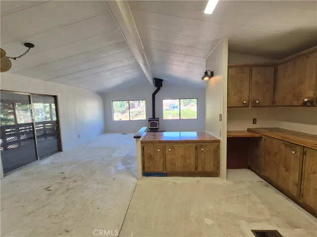 The spacious living room opens directly onto a private covered deck—ideal for relaxing outdoors or enjoying the fresh mountain air. Inside, you’ll find an EPA-approved wood-burning stove for cozy evenings, and a dedicated laundry room with washer/dryer hookups for added convenience. A covered carport provides year-round shelter for your vehicle.
