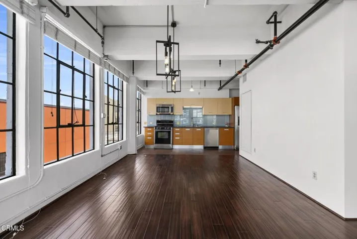 Views, Views, Views – and with On-Site Parking!! Welcome to the historic Cornell Building within the Fashion District’s Santee Village. Located on the 10th floor, just below the top floor and penthouse, this open artist’s studio features a gorgeous industrial design with 10ft+ ceilings, custom hardwood-like floors and a prime corner building location for maxim privacy and use of space. Two walls of original steel-frame casement windows showcase an abundance of natural light and the beauty of downtown with 180-degree unobstructed views of the city, and even the San Gabriel mountains on a clear day. Enjoy preparing meals in the modern kitchen featuring stainless steel Bosch appliances and accented by gorgeous wood cabinetry. The bathroom features an oversized soaking tub, additional storage space and includes a dual operating washer/dryer combo appliance. Additional features include custom overhead lighting, central A/C and Heat, and highly coveted & convenient On-Site parking for one car inside the building’s parking garage at the basement level. Lastly, this live/work building qualifies under the Mills Act, providing significant property tax savings for its owners.The Santee Village offers a wide range of communal amenities such as a roof top pool and spas, basketball court, golf driving range, BBQ areas, fitness center, 24hr on-site security, and local market & food establishments within the village courtyard. Centrally located and minutes to Pershing Square, The Broadway Corridor, bars, shops & restaurants including the famed Sonoratown and the Tower Theatre flagship Apple Retail Store, Santee Village is downtown LA living at it’s best!
