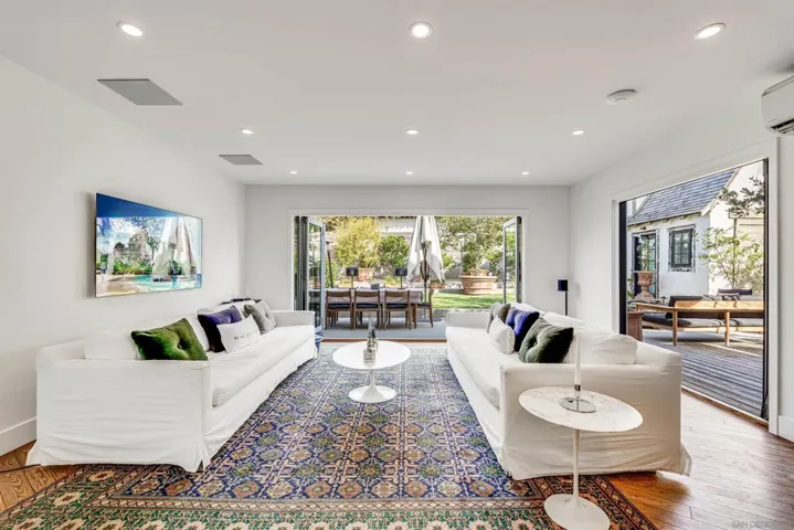 Elegant 4 bed, 3 bath Tudor-style La Jolla home with European charm, just a short walk to the beach, dining, and shops. Features two living areas, gourmet kitchen, office with ocean peek views, and a lush backyard with fruit trees, garden, fire pit, BBQ, and multiple seating areas. A rooftop deck offers ocean and sunset views. Open layout and indoor-outdoor flow make it ideal for entertaining or relaxing. This home features one king and three queen beds, a walk-in closet in the primary suite, and an executive office with peek ocean views. Driveway parking for two and ample street parking add convenience. At the center of the experience is a rooftop deck, an elevated retreat accessed via a spiral staircase from the backyard. Overhead heaters allow for cozy mornings or evening gatherings in the fresh coastal air. The first living room, located just off the entry, features two cozy sofas and a reading nook. Straight ahead, the main-level guest bedroom includes a queen bed, ensuite bathroom with walk-in shower, and plenty of natural light. To the left of the entry, the home opens into a into a spacious kitchen, dining area, and second living space with a smart TV and a full wall of floor-to-ceiling windows that open to the backyard for seamless indoor-outdoor flow. Additional amenities include in-home laundry discreetly tucked into the kitchen and one smart TV. Please note: this home is not pet-friendly. Sleeping Accommodations (Maximum Occupancy 8): Bedroom 1 – 1 King bed Bedroom 2 – 1 Queen bed Bedroom 3 – 1 Queen bed Bedroom 4 – 1 Queen bed There are a total of 3 bathrooms