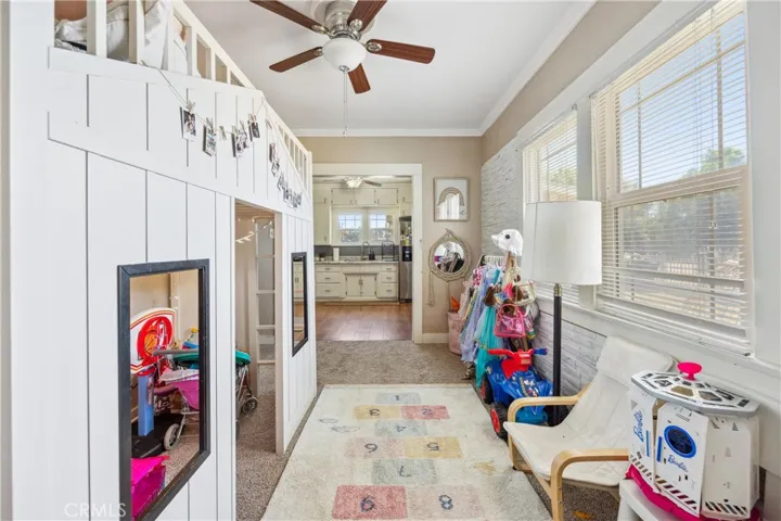 A rear unit consisting of 2 bed/1 bath features a stylish built-in bar with a full-size kitchen. Ideal for a home business, client lounge, or private guest suite.