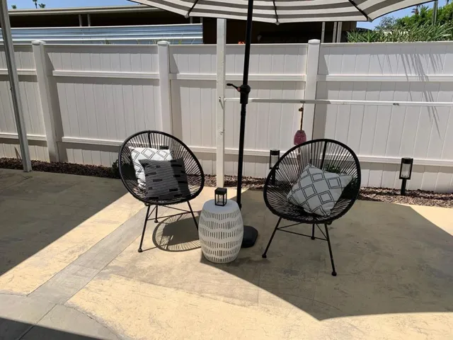 2012 manufactured home in almost new condition. Approx. 1140 sq. ft. three bedrooms and two bathrooms., cathedral ceilings This home is in immaculate condition and ready for you to move in. Owner moving out of state. Conveniently situated almost next to RV Storage, if you own one. Privacy gates close off the main entry and driveway . Large low maintenance yard area is ideal for your pet as is private and fenced. Also great for outdoor entertaining.Located between Palm Springs and Palm Desert, this home is ideally located for fine dining and world class entertainment. Eisenhower and Desert Regional hospitals are minutes away.Nick’s Italian Bistro is on site to serve beverages and good eats. There are three main pools with hot Tubs. Library, sauna, Gym . and Pavilion with table tennis and pool tables. Also available for private party’s. Main Clubhouse for special functions. There are Dog runs for large and smaller pets, plus pet walking areas.Appliances are approx 3 years old. Fridge 2 years. A/C 3 years. Home has Water filter system. Ceiling fans in Living room and primary bedroom. Both bathrooms have tub with shower over. Laminate vanity. Kitchen has 5 burner gas range plus microwave.This is a 55+ year old community..