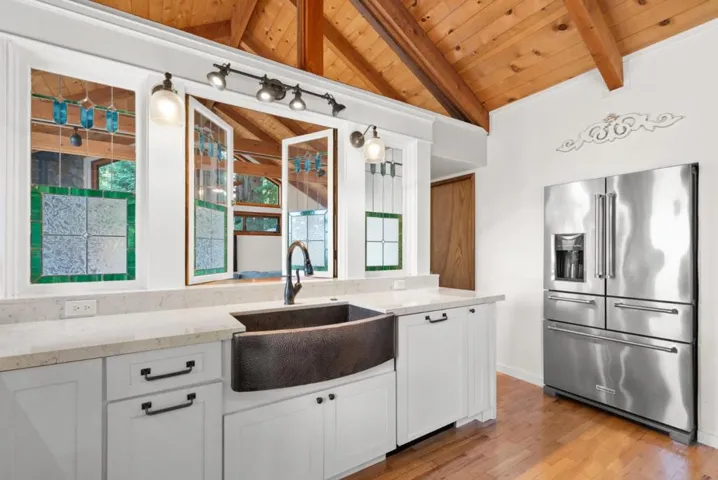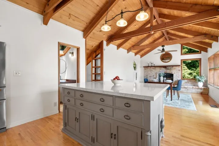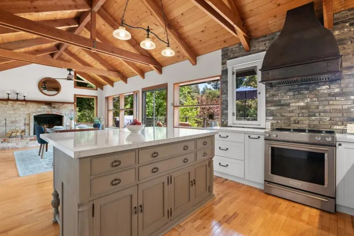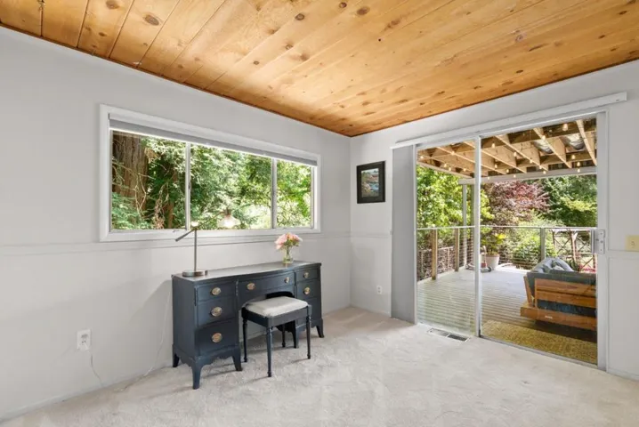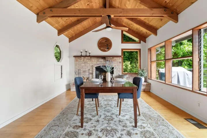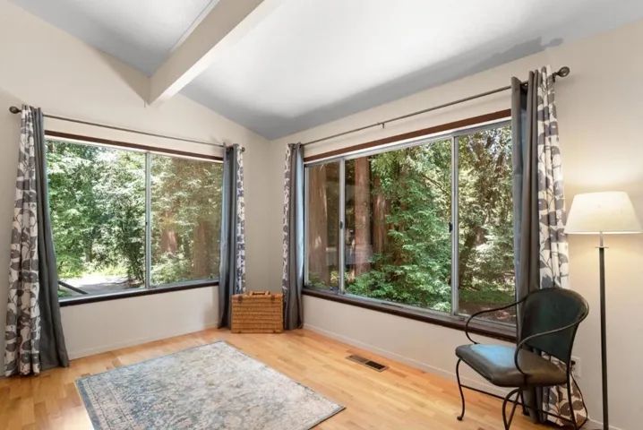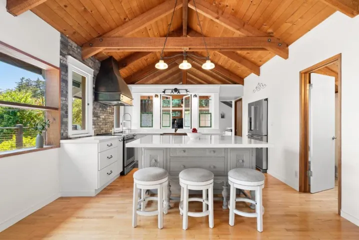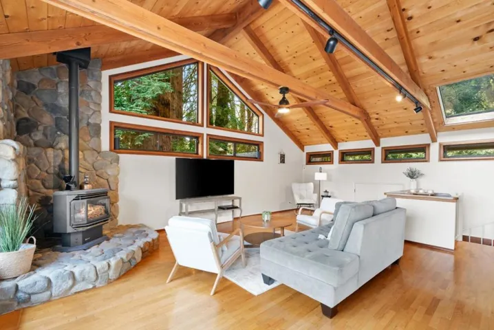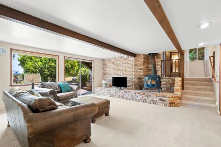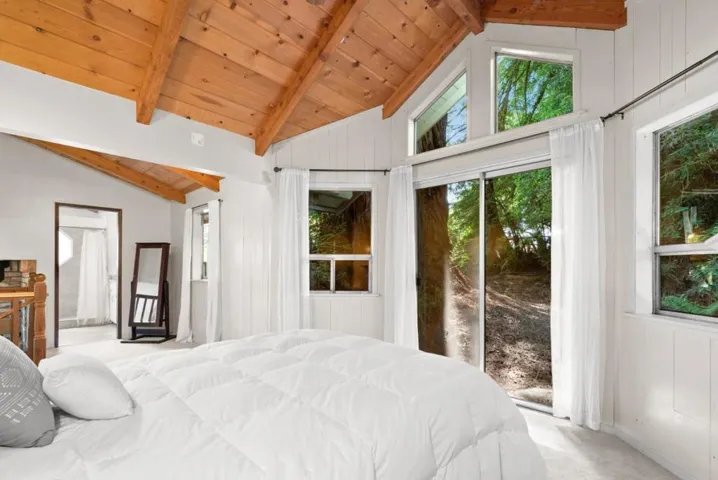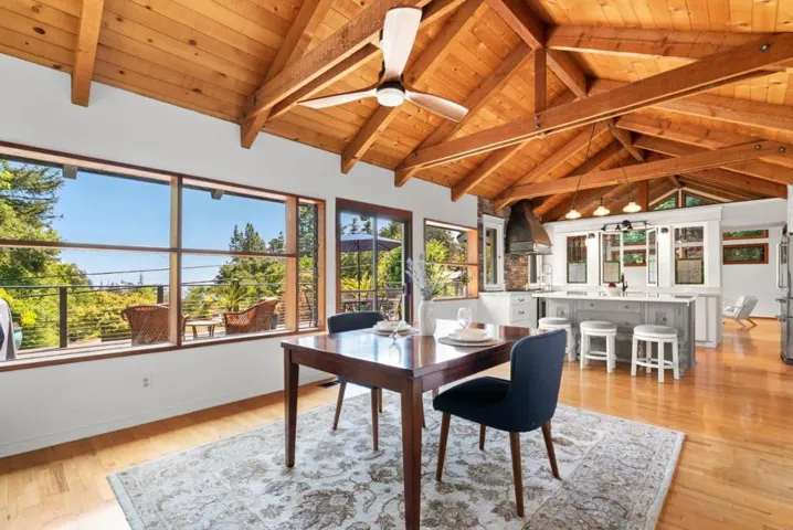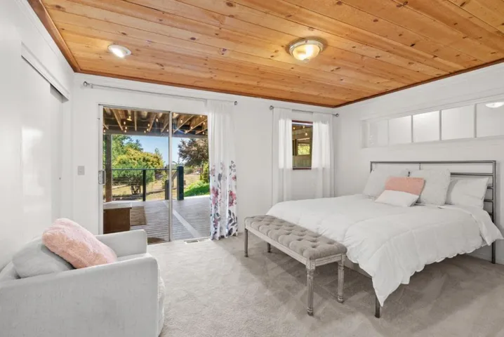Ideal Mt. Madonna location with an easy commute to Gilroy & the Bay Area, all while enjoying the serenity of coastal country living. Located on over 2.28 acres in a private cul-de-sac, it offers easy access from Mt Madonna County Park to Gilroy wineries/shops, as well as a short ride to the beach. This 4-bedroom, 3-bathroom home, surrounded by majestic redwood trees, offers 2,798 sq. ft. of comfortable living space with a large bonus room and views of the Pacific Ocean, Monterey, and Watsonville. The private, west-facing backyard features fruit trees, a pool, and a large workshop. It is perfect for entertaining and enjoying breathtaking sunsets. Step inside to find beautiful open beam ceilings, oak hardwood floors, a spacious living room, kitchen, and family room. The master suite includes a relaxing sitting room with a fireplace. Significant upgrades enhance this property, including a Trex deck, updated kitchen and bathrooms, Tesla Power wall/solar panels with EV charging, and a new well water maintenance system. This renovated home offers an unparalleled lifestyle.