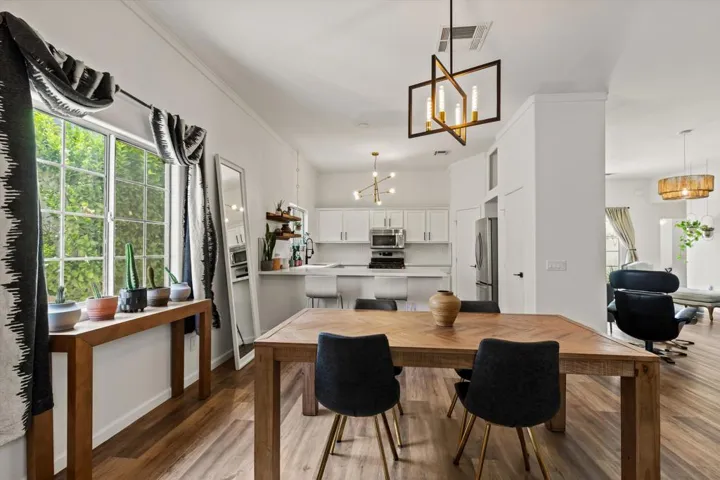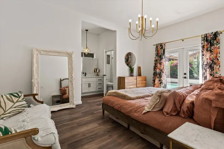 Nestled in the coveted Historic La Quinta Cove, this stunning Santa Fe-style home offers the perfect blend of sophisticated design and California desert lifestyle. This walkable, dog-friendly neighborhood is renowned for its tranquil ambiance, scenic hiking trails, captivating mountain vistas, and vibrant arts community.Impeccably Updated InteriorStep inside to discover a thoughtfully designed living space that truly shows like a model home. The gourmet kitchen showcases gleaming quartz countertops, premium stainless steel appliances, and designer fixtures that elevate everyday living. Soaring 10-foot ceilings create an airy, expansive atmosphere, while curated light fixtures add sophisticated ambiance throughout. The striking fireplace anchors the living room as a stunning focal point, and elegant laminate wood plank flooring flows seamlessly from room to room.Prepare to be captivated by the resort-style backyard retreat. The expansive freshly repainted pool sparkles against a backdrop of breathtaking mountain views and mature citrus trees. Entertain in style under the covered patio, then gather around the custom firepit or outdoor TV lounge area as the sun sets over the desert landscape. Low-maintenance landscaping means more time enjoying your oasis and less time on upkeep.This home delivers peace of mind with recent major upgrades: roof, HVAC, garage door opener (all less than 5 years old), plus a brand new water heater. Located in the cost-effective IID utility district with NO HOA fees, you’ll enjoy significant monthly savings.Minutes from your door, discover the charm of Old Town La Quinta with its popular locally-owned restaurants, cafes, and eateries. Enjoy weekly farmer’s markets, art walks, and car shows, all while being centrally positioned for world-class golf, Acrisure Arena entertainment, El Paseo’s luxury shopping, and just 30 minutes from both downtown Palm Springs and Indio’s legendary music festivals.This isn’t just a home–it’s your gateway to the celebrated Coachella Valley lifestyle. Schedule your private tour today!