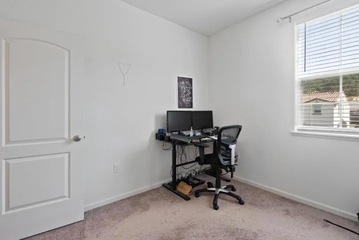 Welcome to this charming 4-bedroom, 2.5-bathroom home located in the Glen Loma Development. Spanning 1,856 sq ft, this residence boasts a modern kitchen equipped with quartz countertops, a gas oven range, and stainless steel appliances like a dishwasher, microwave, and refrigerator. The home offers the convenience of an upstairs laundry area with electricity and gas hookups, complete with a washer and dryer. Additional features include Central AC for year-round comfort, double pane windows, and solar power for energy efficiency. The home is equipped with a Level 2 EV hookup and offers a 2-car garage. Situated in the Gilroy Unified School District, this property provides a practical and inviting living space amidst a community with diverse amenities.