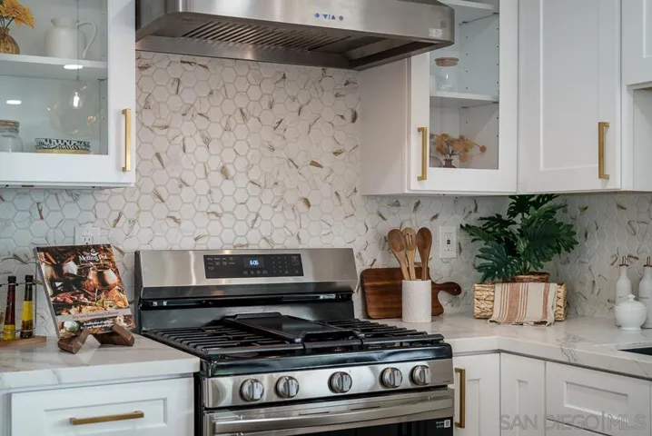 Absolutely Spectacular Fully Remodeled Designer Single-Story Home in the Prime Mission Heights Location under $1M!! This move-in-ready masterpiece exudes modern sophistication and exquisite design in one of the city’s most desirable areas. Imagine living in a space that feels completely brand new in every way! Step inside to be greeted by an expansive and sun-filled living area adorned with all-new recessed ceiling lighting, luxurious new LVP flooring, warm fireplace, and a brand new roof. The chef-inspired open-concept kitchen boasts elegant soft-close cabinetry, a stunning waterfall quartz countertop, a dazzling designer backsplash, a gas stove, a microwave drawer, and state-of-the-art stainless steel appliances. Designer finishes exude luxury with an oak fluted toe-kick island, gold geometric pendant lights, custom hexagonal gold veined marble look backsplash, and custom tile throughout. The primary bedroom features a private en-suite bathroom with dual sinks, polished white quartz streaked with cloud-like gray veining countertops, and breathtaking designer finishes. The backyard has been thoughtfully transformed into an entertainer’s paradise, complete with a brand-new outdoor kitchen featuring a sink and fridge, a covered pergola, a designer accent wall, and lush turf. Situated in the Mission Heights neighborhood of Linda Vista, you’ll enjoy unbeatable access to top-rated schools, shopping, dining, and convenient freeway connections. Just 1 mile from Fashion Valley Mall and half a mile from Mission Heights Park, plus proximity to Mission Bay, golf courses, top schools, and the University of San Diego—this home offers an unparalleled lifestyle and endless possibilities. Don’t miss your chance to own this modern, upgraded dream home in the perfect location!