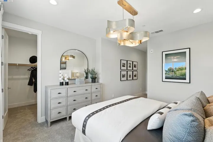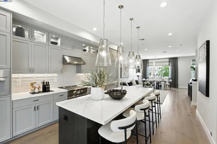 Enjoy the best of Alameda living with a prime location just steps from the marina. Plan 4 at Skyline offers over 2,100 Sq.Ft., including a private ADU on the entry level with kitchenette and full bath – ideal for guests, or multigenerational living. The main level showcases an open-concept great room and dining area with a bright kitchen featuring beautiful white cabinetry, quartz countertops and backsplash, and Bosch induction appliances. Upstairs, the primary suite includes a walk-in closet and spa-inspired bath with dual vanities and a walk-in shower, complemented by a secondary bedroom with an en-suite bath, and laundry. On the top floor, a private rooftop deck offers glimpses of the San Francisco skyline and Salesforce Tower to the west, and the Oakland Hills with Coast Guard Island to the east – the perfect backdrop for entertaining or relaxing at sunset. This brand-new home combines low-maintenance living with modern design in a walkable neighborhood close to shops, dining, parks, and the ferry. Move-in ready this fall – schedule your private tour today! Representative photos added*