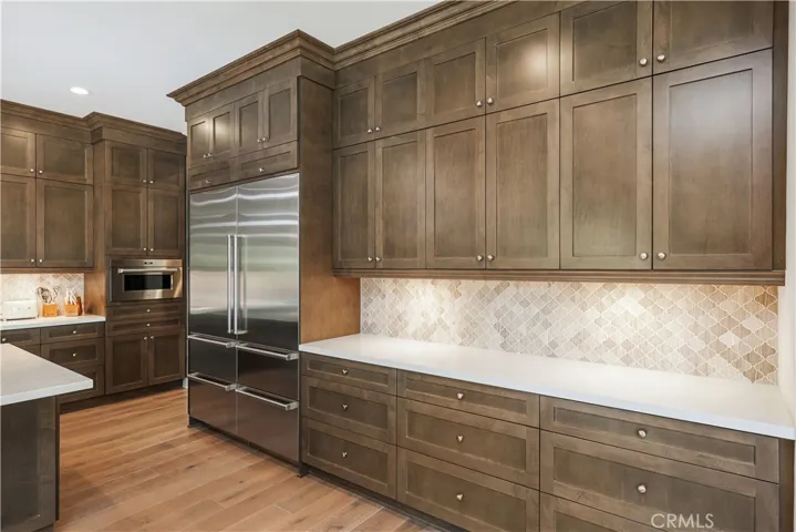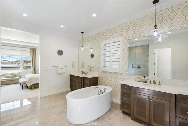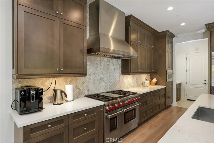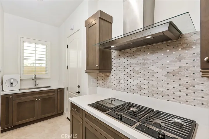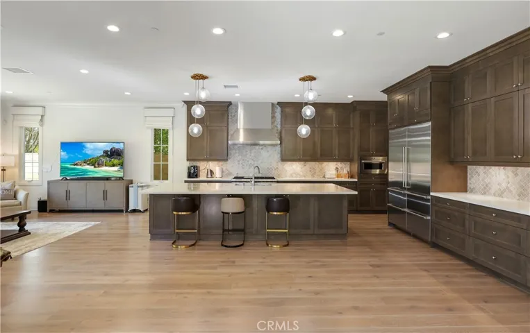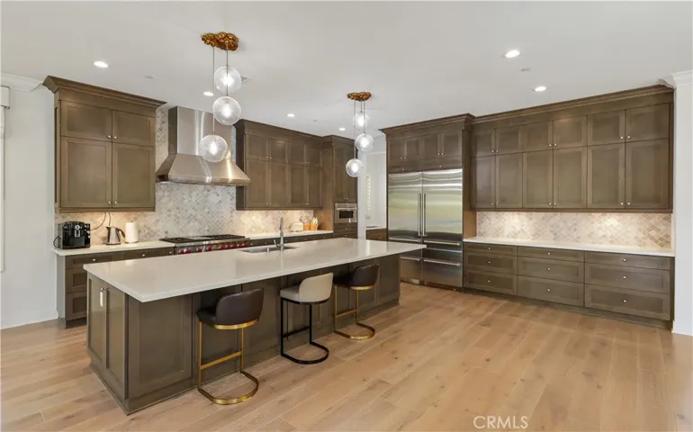 *LUXURY*UPGRADED*LOCATION*Discover unparalleled elegance in this professionally designed, highly upgraded Toll Brothers MERIDIAN model, located in the exclusive 24-hour guard-gated Altair Irvine community. This stunning 5-bedroom, 5.5-bathroom residence blends modern luxury with timeless sophistication, showcasing meticulous attention to detail in every corner. As you step into the grand two-story foyer, you’re greeted by exquisite wall paneling, elegant designer chandeliers, and premium flooring that set a luxurious tone. The open-concept layout flows effortlessly, enhanced by soaring ceilings on both the main level and upper floor, creating a bright, airy ambiance throughout. The heart of the home is a gourmet kitchen, complete with a 60” Sub-Zero refrigerator-freezer, a 6-burner Wolf range, a large center island, a 48-inch gas cooktop, double ovens, a microwave, a dishwasher, sleek stainless-steel finishes, a striking backsplash, and unique pendant lighting. A standout feature is the luxurious Prep Kitchen—a bespoke Toll Brothers addition—perfect for hosting and entertaining with ease and style. The first floor also offers a private guest suite with a full bath, a spacious ensuite office with an additional powder room, and an expanded California Room, currently used as a home gym or extra lounge, blending indoor-outdoor living effortlessly. Upstairs, the expansive master suite boasts a massive walk-in closet, dual vanities, a freestanding soaking tub, and a private retreat. Each secondary bedroom comes with its own ensuite bathroom, while a versatile loft provides additional space for relaxation or entertainment. The outdoor area is a low-maintenance, modern oasis with a spacious, well-designed patio ideal for hosting gatherings or relaxing with stylish patio furniture. Energy-efficient solar panels add sustainability to this sophisticated home. Altair’s resort-style amenities elevate the lifestyle, offering two luxurious clubhouses, zero-edge pools, spas, cabanas, tennis courts, parks, and scenic walking trails—all just steps away. Zoned for top-rated Irvine schools, including Portola High School and Cadence Park School, this home is perfectly situated near Woodbury Town Center, Irvine Spectrum, Fashion Island, and major freeways (5, 405, 133, 241) for easy access to shopping, dining, beaches, and entertainment. This exceptional home is a rare gem—schedule a visit to experience its grandeur, style, and unmatched sophistication in person…