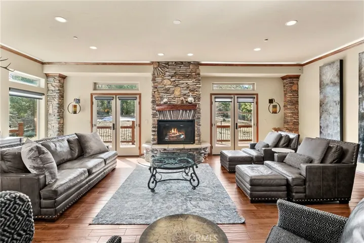 Located in Big Bear’s central Fox Farm area, just minutes from ski slopes, the lake, hiking, and local amenities. Gated entry with private road leading up to property. Offered fully furnished.