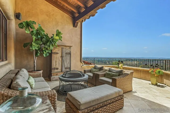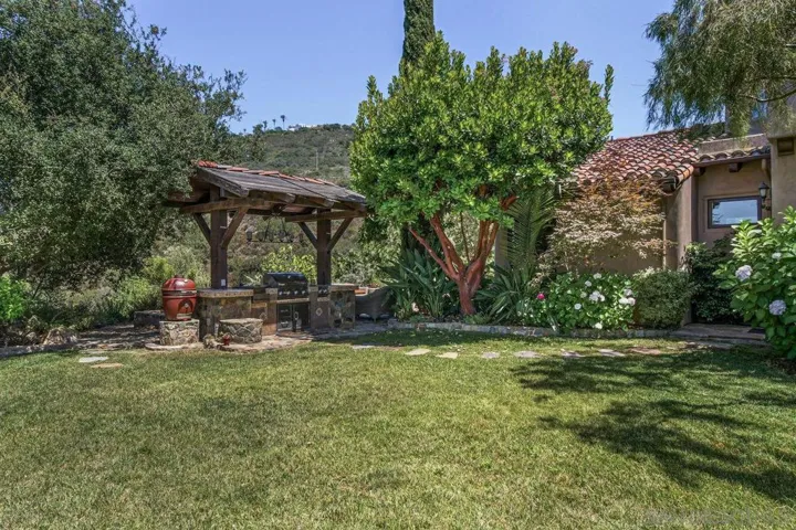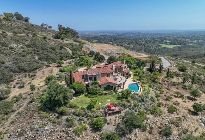 TUSCAN MASTERPIECE with Ocean Views on the horizon in the ROGER ROWE School District! Experience exceptional privacy and panoramic views in this stunning Tuscan-inspired estate located in the rolling hills of Elfin Forest. Meticulously designed by award-winning architect Dena Gillespie and crafted in 2009 by the Malone Brothers situated on nearly 30 acres, this custom home has it all! Featuring a chef’s kitchen with top of the line appliances, a walk-in pantry, formal dining room, upgraded lighting, wine room, games room and spacious living areas with vaulted ceilings and rich architectural detail. The grand primary suite includes a spa-like bath, steam room and a private balcony overlooking the countryside. Outside, enjoy an infinity-edge pool and spa, covered patios, a fire pit, and beautifully landscaped grounds with private gardens teaming with flowers and fruit throughout the year! Enjoy a game of Bocce Ball and a cocktail at sunset! Entertaining possibilities are limitless! This energy-efficient home features a fully owned solar panel system paired with a Tesla Powerwall, delivering substantial savings on electricity and seamless backup power during outages. Access through The Bridges & County property for quick access to the Roger Rowe School and adjoining Rancho Santa Fe. The property is zoned for horses. Located in the desirable Rancho Santa Fe School District K-8, this home blends luxury, space, and serenity. Offered furnished. Minimum 12-month lease. Pets considered upon approval. Live on large acreage without the financial responsibility!!