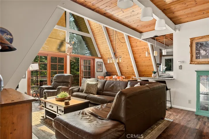 SO CHARMING & SO RUSTIC! You’ll fall in love with this amazing A-FRAME home oozing with character featuring 4 bedrooms, 3 baths, PLUS a separate apartment for family, friends, or extra income! The wall of windows floods the space with natural light, highlighting the warm wood interior. The cozy living room is the perfect spot to curl up with a book by the fire and watch the snow fall. The kitchen is well-equipped with plenty of storage, and there’s even room for a full-size dining table—perfect for Thanksgiving or holiday gatherings. Step outside to the super deep decks surrounded by soaring cedars & pines. Lounge in the hammock, host a barbecue, or let the kids and pups play safely in the huge fenced yard.