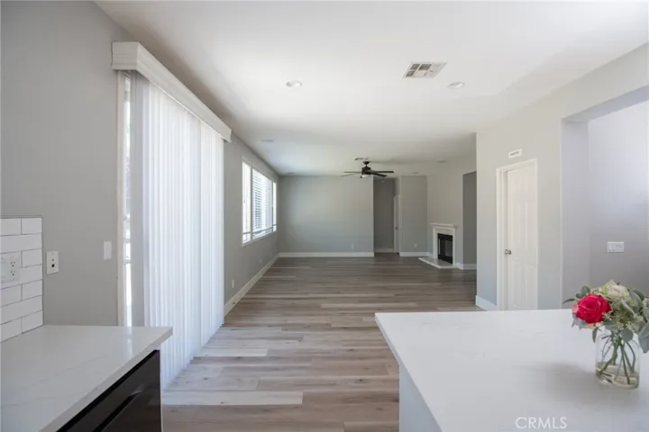 Step into an inviting formal living and dining area that flows into a spacious family room with a cozy fireplace. The remodeled kitchen features all-new cabinetry, sleek countertops, a large prep island with bar seating, and a walk-in pantry—perfect for hosting or everyday gatherings.