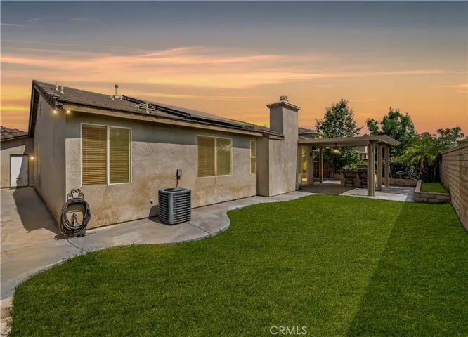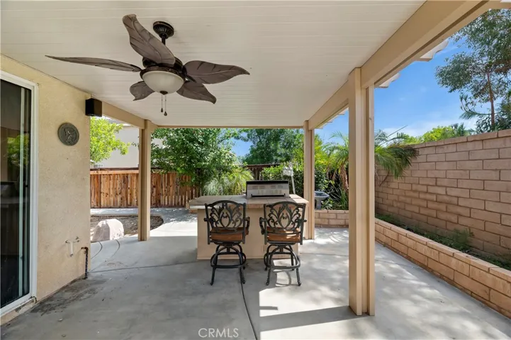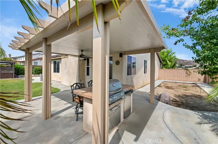 Welcome to the fabulous booming town of Menifee! Set in a small established neighborhood, this SINGLE STORY- 5 BEDROOM home on nearly a QUARTER ACRE LOT is in a prime location and offers a host of local amenities. Just minutes from MSJC, Paloma High School, and the Gale Webb sports park-AND only 10 minutes from just about every kind of store or restaurant you could need! Enjoy the outdoors? You will also find trails for walking or biking within minutes as well. The home has a great layout with mutliple living spaces and a full bedroom/office with french doors off the main living room. Open large kitchen with center island, granite counter tops and dark mocha colored cabinetry, ceiling fans in everyroom and tile flooring throughout the home. EQUIPPED WITH TESLA SOLAR and offering LOW TAXES AND LOW HOA, Buyers can really maximize their purchase power and make this home their own.
