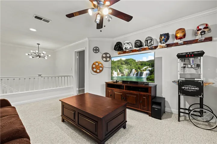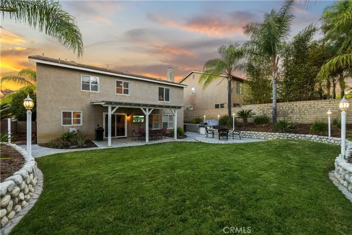 IMMACULATE and REMODELED cul-de-sac home near the top of Hillcrest shows like a model home with NO HOA or Mello-Roos! Pride of ownership is evident and the beautifully landscaped front yard provides great curb appeal with mature palm trees, a river rock wall, and an EXTRA WIDE DRIVEWAY THAT CAN ACCOMMODATE AN RV/CAMPER! Upon entry through the covered front porch, you’re greeted into the light & bright home that’s been FRESHLY PAINTED and is adorned with engineered bamboo wood flooring that is durable and water resistant and spans the entire first floor. Your stunning open-concept kitchen has been gorgeously remodeled with espresso soft-close cabinetry with pull out drawers, Ogee edge granite countertops, mosaic tile backsplash, pendant lighting, stainless steel appliances and sink, and a pantry. It opens up to the family room designed for entertaining with a surround sound system, ceiling fan, and a built-in entertainment center surrounding a cozy fireplace. Your first floor also includes a powder room and laundry room complete with plenty of cabinetry, a granite countertop, and a laundry chute from your primary suite. Head upstairs where you’ll find a spacious loft, 4 bedrooms, and 2 full bathrooms. Your primary suite features cathedral ceilings along with a double sink vanity, walk-in shower, soaking tub, spacious walk-in closet, and newly installed tile floors. Plantation shutters, crown molding, and recessed lights adorn the home adding to its beauty. Entertain and enjoy relaxing evenings in your tastefully landscaped backyard featuring outdoor lamp posts, a built-in BBQ, a gas fire pit, river rock planter walls, stamped concrete, raised garden beds with dedicated watering system, and covered patio to enjoy al-fresco dining or watch your favorite sports games on the 45″ outdoor TV. Your NEWER AC UNIT IS ONLY ~1 YEAR OLD and provides comfort and energy efficiency year-round. Your two car garage includes a work bench, shelving, and a level 2 EV charging station. Surrounded by award winning schools, parks, shopping centers, dining options, Castaic Lake, and being close to the 5 freeway and highway 126 making commuting quick and easy. Come by and become the lucky new owner of this TURN-KEY home where your story begins!