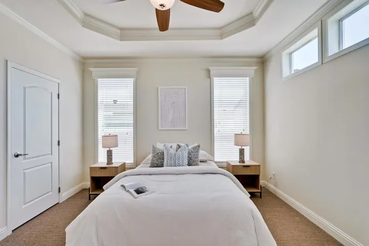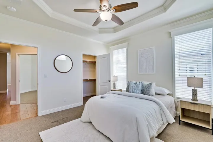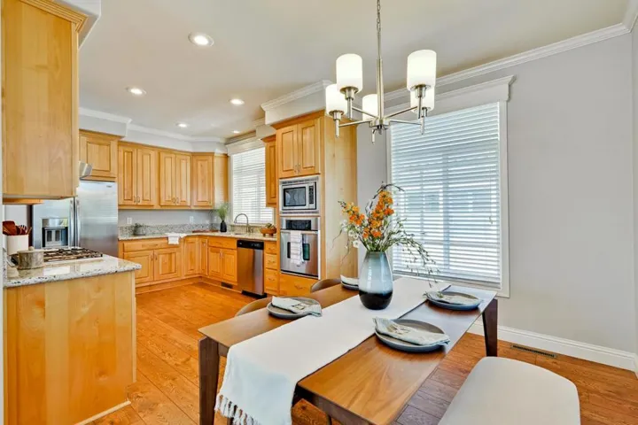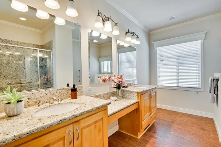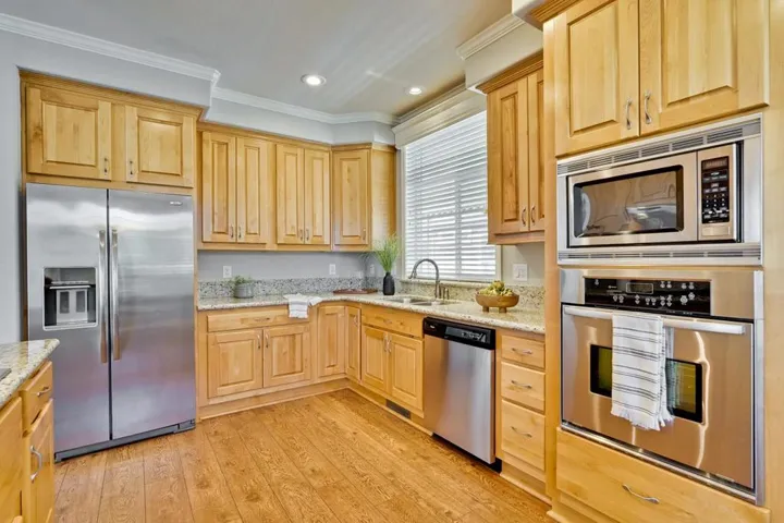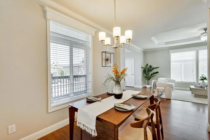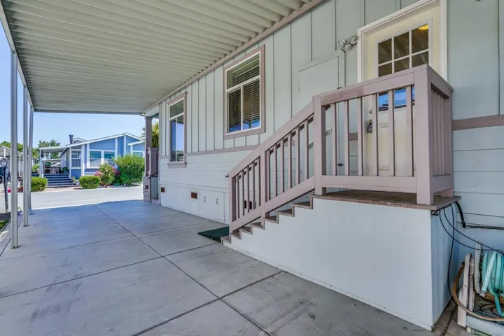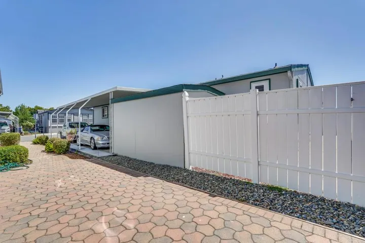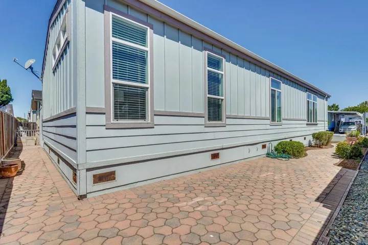 Welcome to this beautiful 3-bedroom, 2-bathroom mobile home locates within the Santa Clara Unified School District. The spacious kitchen is equipped with modern amenities including granite countertops, stainless steel Whirlpool appliances, Alderwood cabinets, a dishwasher, a microwave, oven range, pantry and refrigerator,The open floor plan includes a formal dining area,a combined kitchen/family room, providing ample space for family gatherings. Enjoy the ease of laminate flooring throughout the common area and cozy up in the living room. High ceilings and a walk-in closet add to the luxurious feel of the home. For your convenience, the house also features central forced air heating, central AC and ceiling fans for year-round comfort. The laundry area comes with a nearly new high quality washer and dryer, making move-in a breeze.Wheelchair lift in the carport area making it accessible if you have challenges with steps. Beautiful complex loaded with amenities for fun living. Pools * saunas * card rooms * exercise rm * Bar B Q area * large banquet hall. Central location in the heart of Silicon Valley * 1 block from light rail * Great location inside the park. Don’t miss the opportunity to own this delightful home in the heart of Sunnyvale