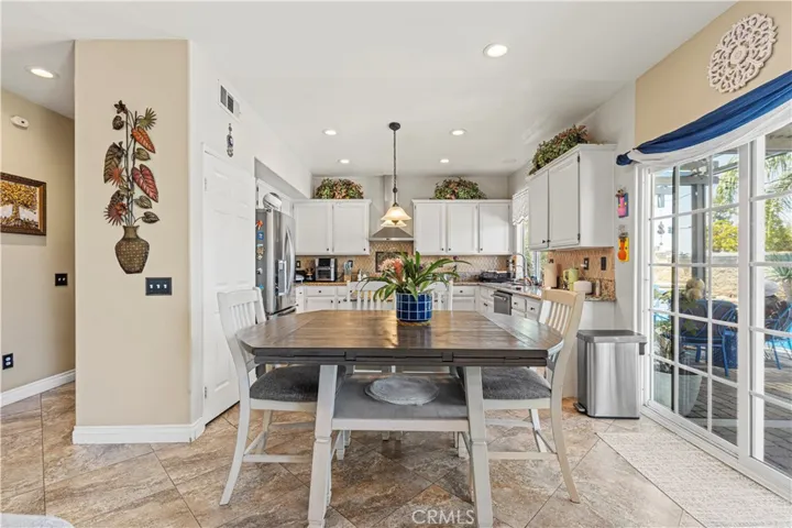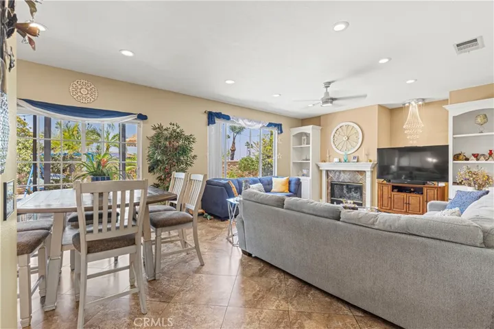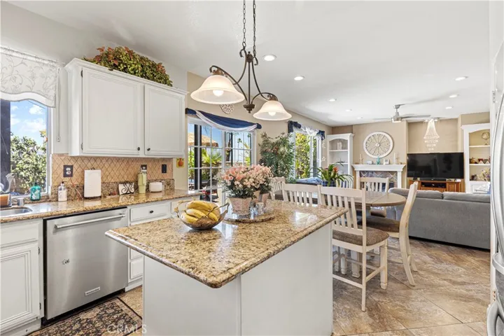 Enjoy the open and airy floor plan with vaulted ceilings and oversized windows that flood the home with natural light. The kitchen opens to the family room and is equipped with wood cabinetry, stainless steel appliances, and a walk-in pantry, ideal for everyday living and entertaining. The cozy family room includes a custom fireplace, and there’s also a formal living and dining room for hosting guests.