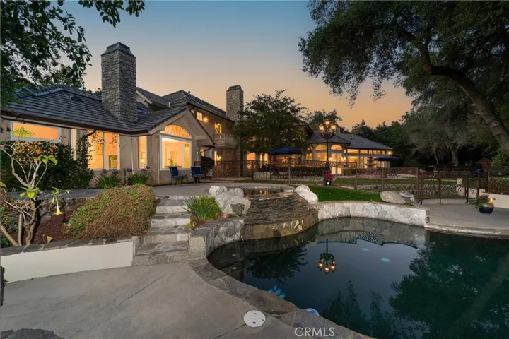 The centerpiece is a recently refreshed and transformed striking 6,000 sq ft home with 5 spacious bedrooms, 5 1/2 bathrooms, thoughtfully designed for open-concept living and effortless indoor-outdoor flow. Winding stone paths lead you across charming bridges and past a gentle stream, all surrounded by lush greenery and curated landscaping that feels like your own private park illuminated by custom designed lamp posts adding to the unique charm of the property. The grounds also boast more than a dozen citrus, avocado and fig trees ripe for seasonal picking.