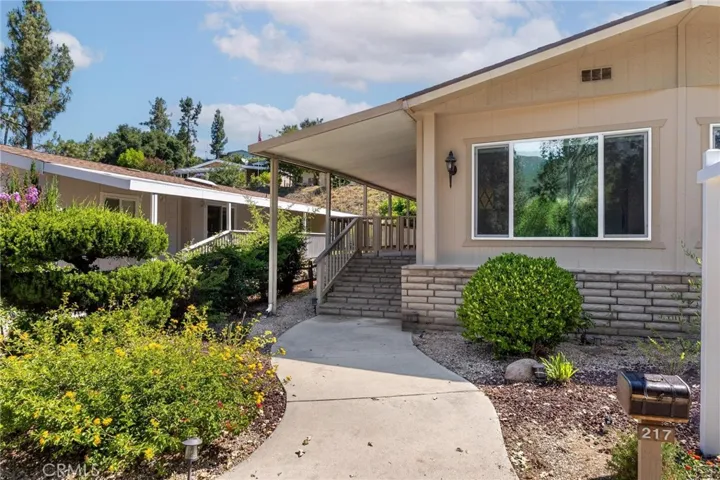**EXCEPTIONAL OPPORTUNITY!!** Own one of the most delightful homes on one of the most delightful cul-de-sac streets within the resort-style Champagne Village! NO NEIGHBORS ACROSS THE STREET ONLY MOUNTAIN VIEWS* CUL-DE-SAC * WIDE LOT AND STREET FRONTAGE GIVES YOU ROOM TO BREATHE* Gated community and you OWN THE LAND, this charming and lightly lived-in home is DELIGHTFUL. Spacious layout, 2 bedrooms, lots of natural light. *NEW VINYL DUAL-PANE WINDOWS* *NEW DESIGNER WINDOW TREATMENTS throughout* NEW induction range* Enjoy views from the COVERED PORCH that runs the entire length of the house for maximum indoor-outdoor living. Low-maintenance lifestyle with all the comforts you need. Bright and open plan. Detached shed with a LOT of storage and power. Home ownership gives you exclusive and private access to community amenities: poolside lounging, fitness room/gym, clubhouse, social gatherings, expansive library. **OWN THE LAND** NEW SHOWER DOORS, TWO NEW TOILETS, NEW DECK COVER, NEW DECK SIDING, NEW PAINT ON FRONT. This home has been HANDLED WITH CARE!! Fantastic location!! Easy drive to San Diego, all North County areas, Temecula, Temecula Wine Country. ** Some areas of this home have been digitally staged for visualization purposes.**