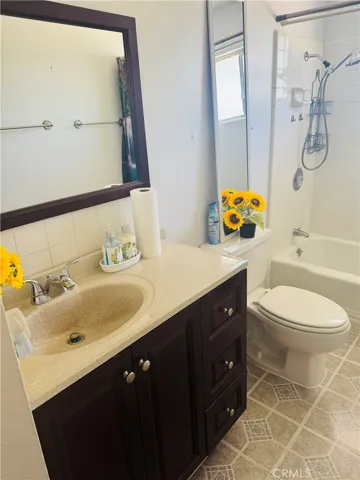 Let’s get your buyer in this home, PRICE REDUCED! Home is ready for your buyer to move in. Charming 2 bedroom, 1 bath home with a partially enclosed patio. There is a one car garage. Bedrooms, living room and dining area have ceiling fans. Nice paint and carpeting throughout. Vinyl flooring in bathroom and kitchen. Lots of space out back for bar b q’s and get togethers. Two sheds also in the backyard with a mature fig tree. Front shows well with a beautiful shade tree. There is laundry room attached to home. There may be room for a small RV parking, buyer to do their own investigating. There is a small HOA annually and there is swimming, spas, fitness center, tournament lawn bowling and other social activities. Senior community