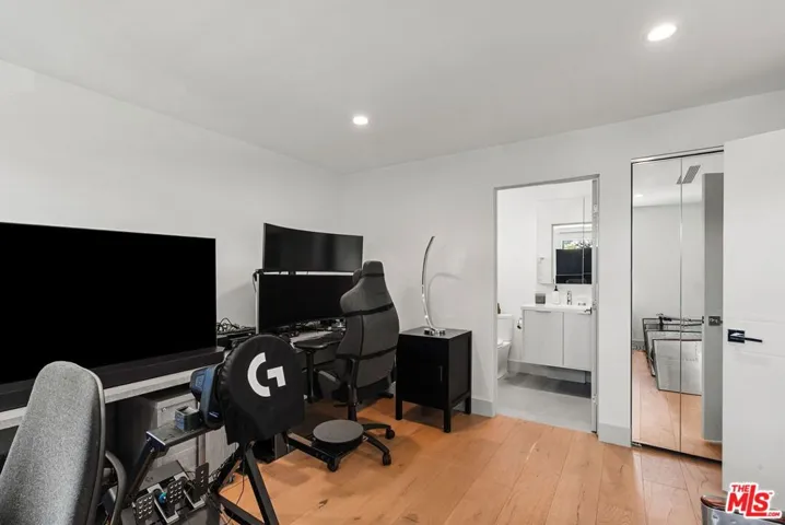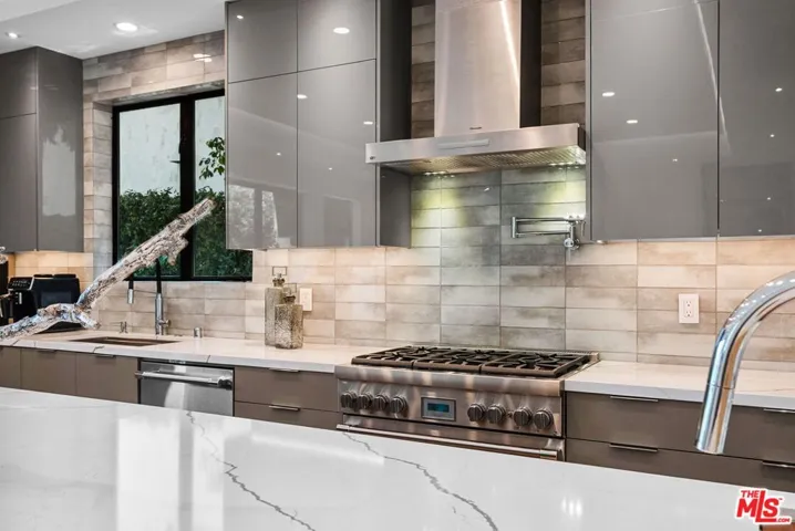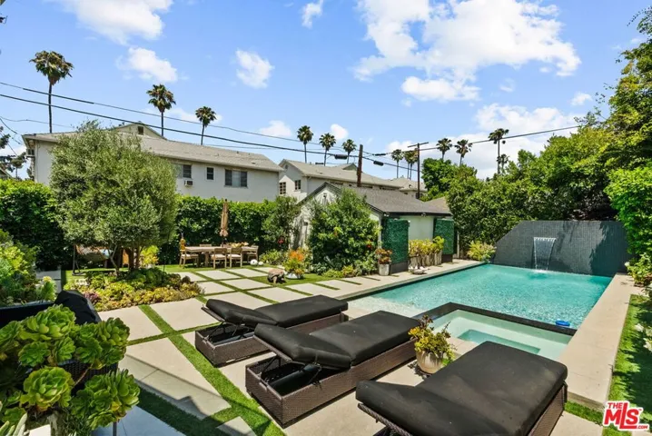 Welcome to this stunning contemporary residence nestled in one of Studio City’s most sought-after neighborhoods. This home built in 2021, features an open-concept floor plan filled with natural light, high-end finishes, tech savvy, and designer touches throughout. Each bedroom is generously sized, with en-suite baths providing privacy and comfort, including a lavish primary suite with a walk-in closet and spa-style bathroom featuring a soaking tub and dual vanities. The gourmet chef’s kitchen features high-end stainless steel appliances by Miele, Thermador, and Sharp, as well as quartz countertops, custom cabinetry, and a large center island. The spacious living and dining areas open up to a beautifully landscaped backyard and front yard complete with a pool and spa, and lush greenery your own tranquil oasis in the heart of the city. A detached garage adds flexible potential for an office, studio, or ADU. Prime Location: Situated within the top-rated Carpenter Charter school district. Just minutes from the Studio City Farmer’s Market, where you can enjoy fresh, local produce and weekend charm. A short stroll to Ventura Blvd’s trendy restaurants, cafes, and boutique shops. Additional highlights include engineered hardwood floors, smart home features, a high-end security system, smart blinds, paid off solar, and a security gate with call box, a detached garage, EV charging station in the garage and designer finishes throughout. Don’t miss this rare opportunity to own a move-in ready luxury home in the heart of Studio City.