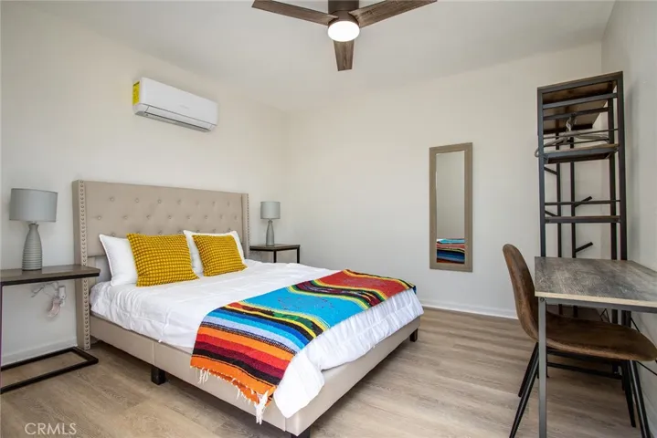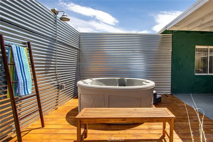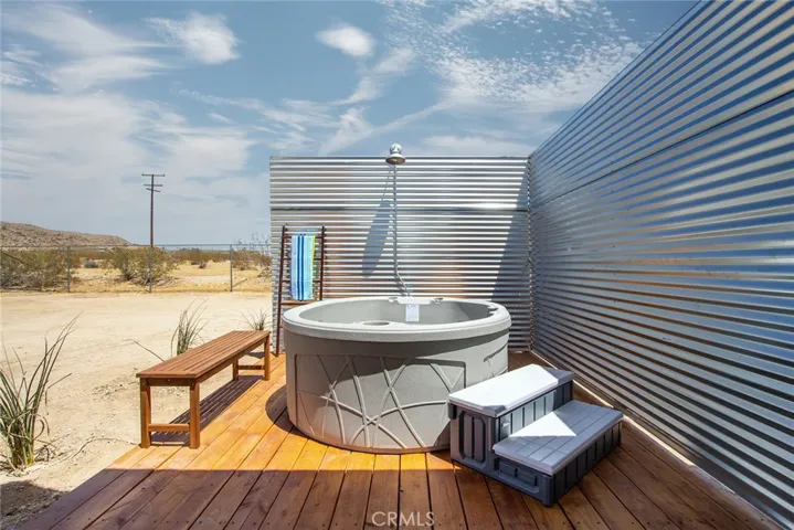 Mid Century Joshua Tree Pad with Private Mountain views! Welcome to Casa Verde—a stylish, sun-drenched retreat tucked away on the last paved street below the stunning Bartlett Mountains. With a wide-open parcel to the north and few neighbors beyond, this home offers rare privacy, panoramic views, and the feeling of being worlds away—yet you’re just minutes from downtown Joshua Tree and the National Park. Inside, the open-concept layout is filled with natural light and flows effortlessly from the living and dining areas into a sleek, updated galley kitchen. The extra-large primary suite is a true sanctuary, complemented by two additional well-appointed bedrooms. Brand new $1500 EV charger installed! Outdoors, enjoy seamless indoor-outdoor living with a spacious front porch shaded by a towering desert pine and a wide covered back patio featuring a hot tub deck, privacy fencing, al fresco dining, and stargazing hammocks. A detached bonus casita offers flexible space for guest overflow, creative use, or added rental potential—expanding both comfort and value. Thoughtful upgrades include new 200 & 70 AMP panels, mini splits, and an 8’x6′ Tuff Shed with brand new washer/dryer. Casa Verde blends elevated design with peaceful desert living in one of Joshua Tree’s most coveted locations.