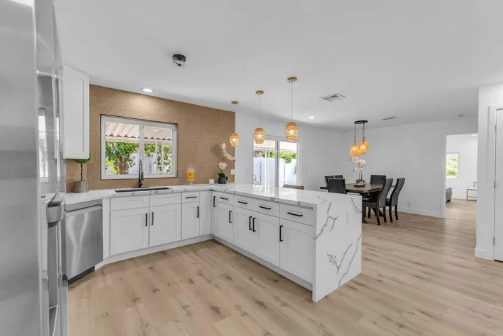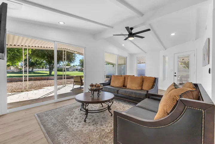 Welcome to Date Palm Country Club, where comfort, style, and convenience come together in this beautifully updated 1,775 sq ft manufactured home. Located in one of Cathedral City’s most desirable 55+ communities, this spacious residence has been thoughtfully upgraded with new windows, a new energy-efficient AC system, fresh interior paint, and modern flooring throughout. Step inside to a bright, open floor plan filled with natural light and designer finishes that add warmth and elegance to every room. The stunning living room features a fireplace that serves as the focal point, creating a cozy yet stylish atmosphere. Large sliding glass doors lead to the covered patio, offering the perfect setting for indoor-outdoor entertaining and relaxing year-round. The kitchen and bathrooms have been completely remodeled with gorgeous modern design, featuring high-end finishes that elevate the look and feel of the home. The kitchen is equipped with brand-new energy-saving appliances and opens seamlessly into the dining and living areas–ideal for hosting friends and family. Both bedrooms are generously sized, offering comfort and privacy, and the refreshed bathrooms reflect modern taste and functionality. Additional features include an attached garage, private side yard, and covered outdoor space–perfect for enjoying the desert evenings. Located within a gated golf course community offering resort-style amenities such as pools, spa, tennis, clubhouse, and more, this home offers both luxury and lifestyle. Don’t miss the opportunity to own a move-in-ready home in a prime location with all the upgrades already done for you!