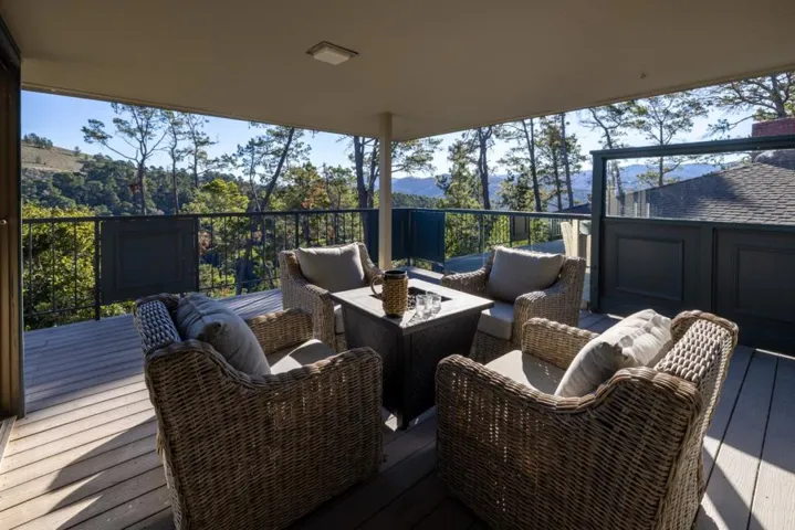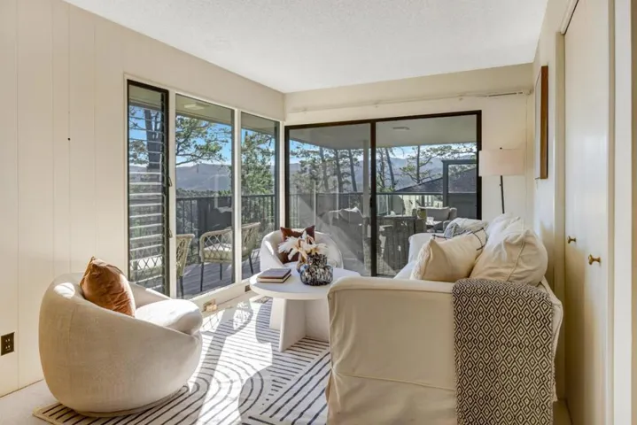 Welcome to this exceptional single-level residence in the coveted Del Mesa Carmel community. A rare freestanding C model, this 2-bedroom, 2-bath home is bathed in natural light, showcasing sweeping forest and mountain views through expansive windows. The open-concept living and dining areas flow seamlessly, anchored by a warm gas fireplace that invites relaxed, elegant living. A versatile den provides the perfect space for a home office, creative studio, or guest retreat. Step out onto a generous private deck, ideal for morning coffee or sunset gatherings, while taking in the serene natural surroundings. Perfectly positioned on the edge of the community, away from the road making it exceptionally private and quiet. While simultaneously being just moments from Del Mesas premier amenities, including the renowned Woodys Restaurant, heated pool, spa, fitness center, and a dynamic calendar of social events. Del Mesa Carmel is one of Californias most desirable 55+ communities, offering 24/7 gated security, on-site maintenance, and a true lock-and-leave lifestyle. Just minutes from Carmels world-class dining, golf, art galleries, wineries, and the stunning coastline. Move in and enjoy immediately, or bring your vision to transform this home into your personalized sanctuary.