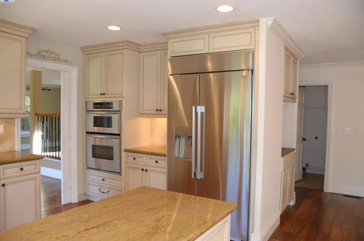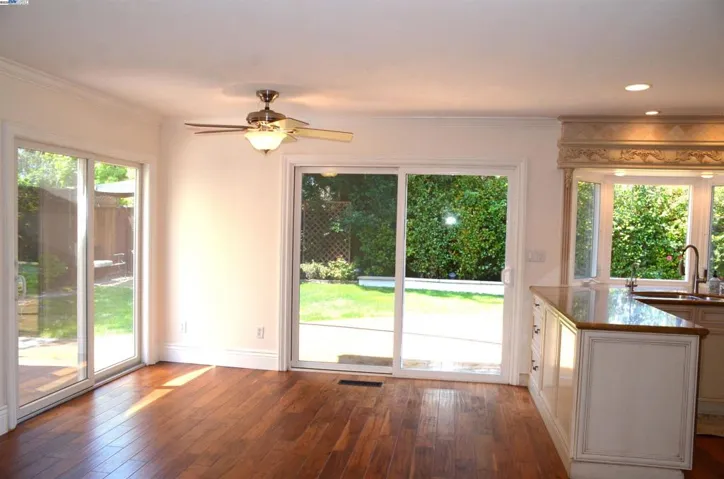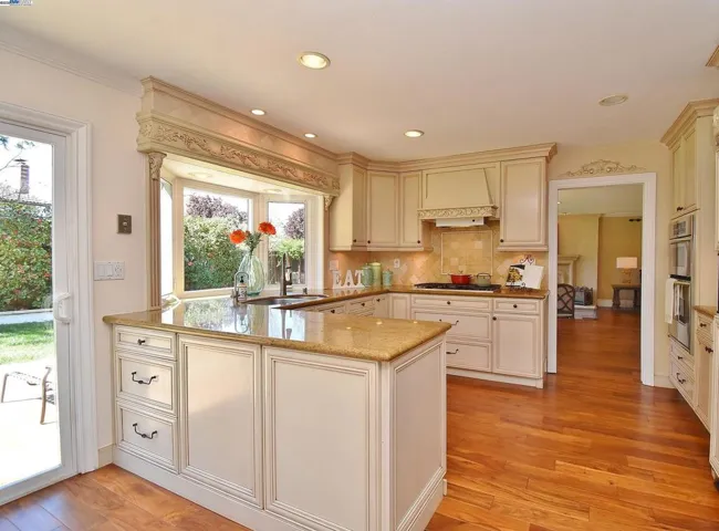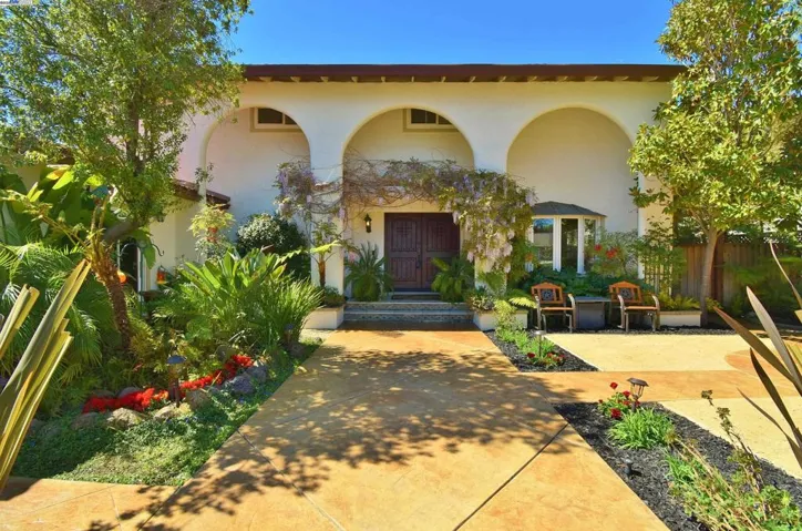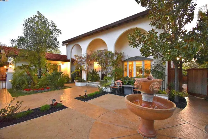 Glorious 5 bedroom remodeled 2 story home in desirable Greenbrook subdivision. Mediterranean inspired style with stamped entry hardscape path into spacious gated courtyard with large fountain, reflection pond, private seating areas with another wall fountain. Interior features include travertine entry, granite counter tops in kitchen and bathrooms, Acacia hardwood flooring throughout the open first level (living/dining room area and family/ kitchen/ dinette area). Custom kitchen cabinetry with ss appliances and new x-large fridge. Custom limestone fireplace wall and mantle with wood stove insert. Also downstairs, separate laundry room, pantry and utility room. Iron/wood staircase leads upstairs to hallway with large skylight &built in bookcase. All 5 bedrooms are upstairs. Large primary bedroom with large ensuite with dual sinks separate closets and Large marble/travertine shower. Guest bathroom remodel too. All bedrooms and hallway carpeted. Finished 2 car garage with epoxy flooring, cabinets, workbenches and 2 exits (sliding glass door into the courtyard for entertaining, and the other to sideyard veggie garden. Backyard includes BBQ, firepit, and large dining areas. Was rented at $6,500/mo last year.
