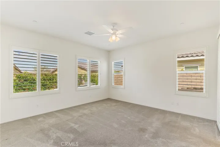 Inside, the home boasts custom plantation shutters throughout, providing a stylish and functional touch. The kitchen features upgraded 24″ tiles and kitchen cupboards, elevating the space with modern finishes. All windows have been tinted to help regulate the temperature, ensuring comfort year-round. The owner’s suite is a true retreat, complete with an expansive walk-in closet, which has been enhanced with a custom-designed closet organizer to keep everything in order. A private bath at the secondary bedroom ensures your guests experience comfort and convenience. For those working from home or pursuing hobbies, a cozy home office provides the perfect space to focus or unwind.